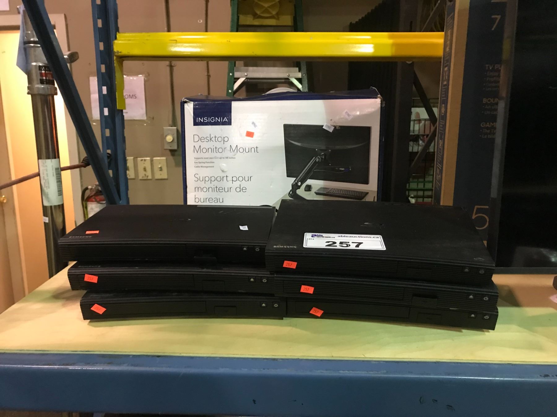 6 SAMSUNG BLURAY PLAYERS AND INSIGNIA DESKTOP MONITOR MOUNT