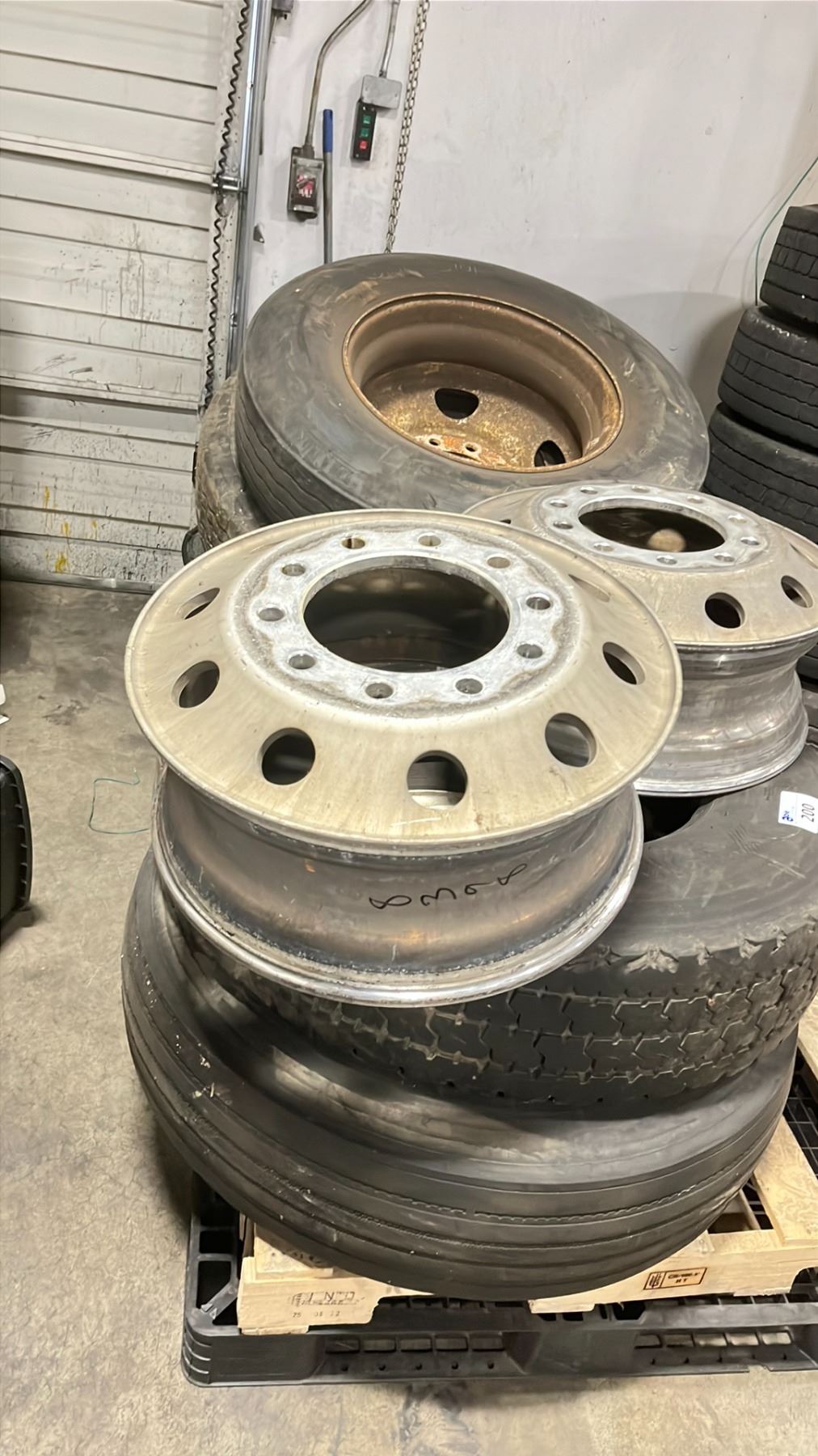 6 SEMI TRUCK/TRACTOR TIRES *SOME WITH RIMS*