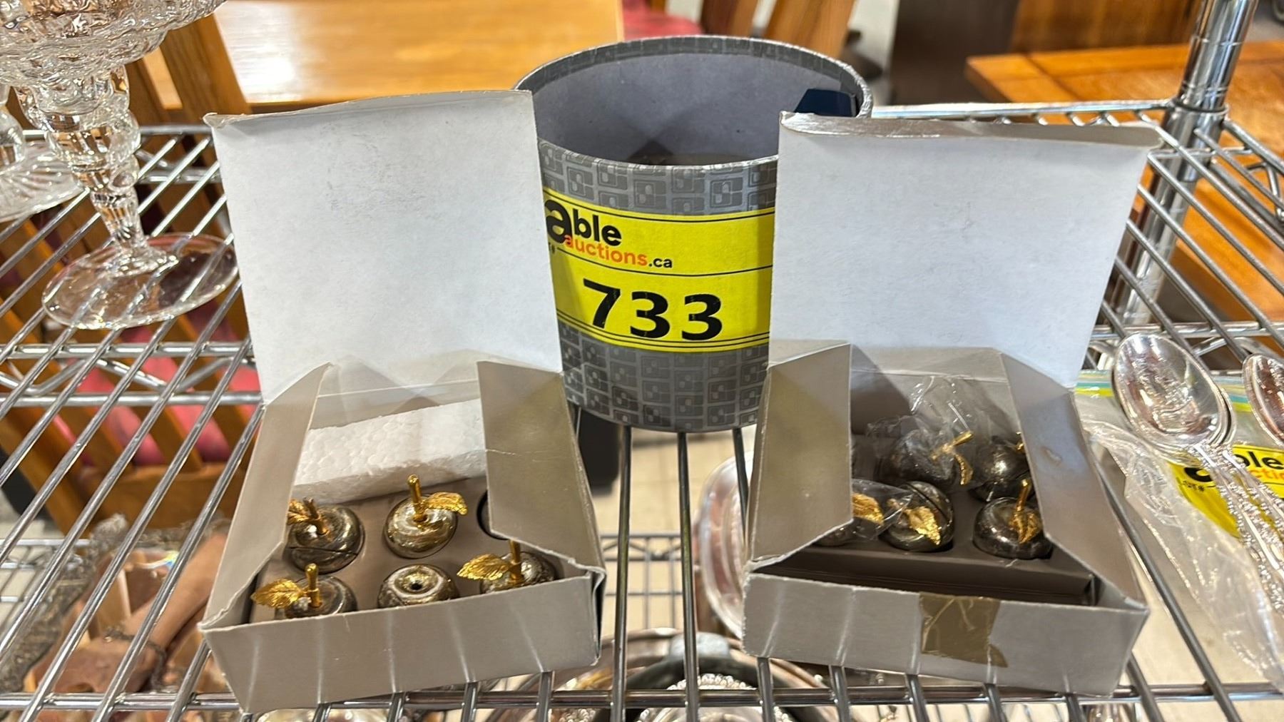 (6) SWAROVSKI CRYSTAL CANDLE HOLDERS & (12) SMALL BRASS APPLE CARD HOLDERS