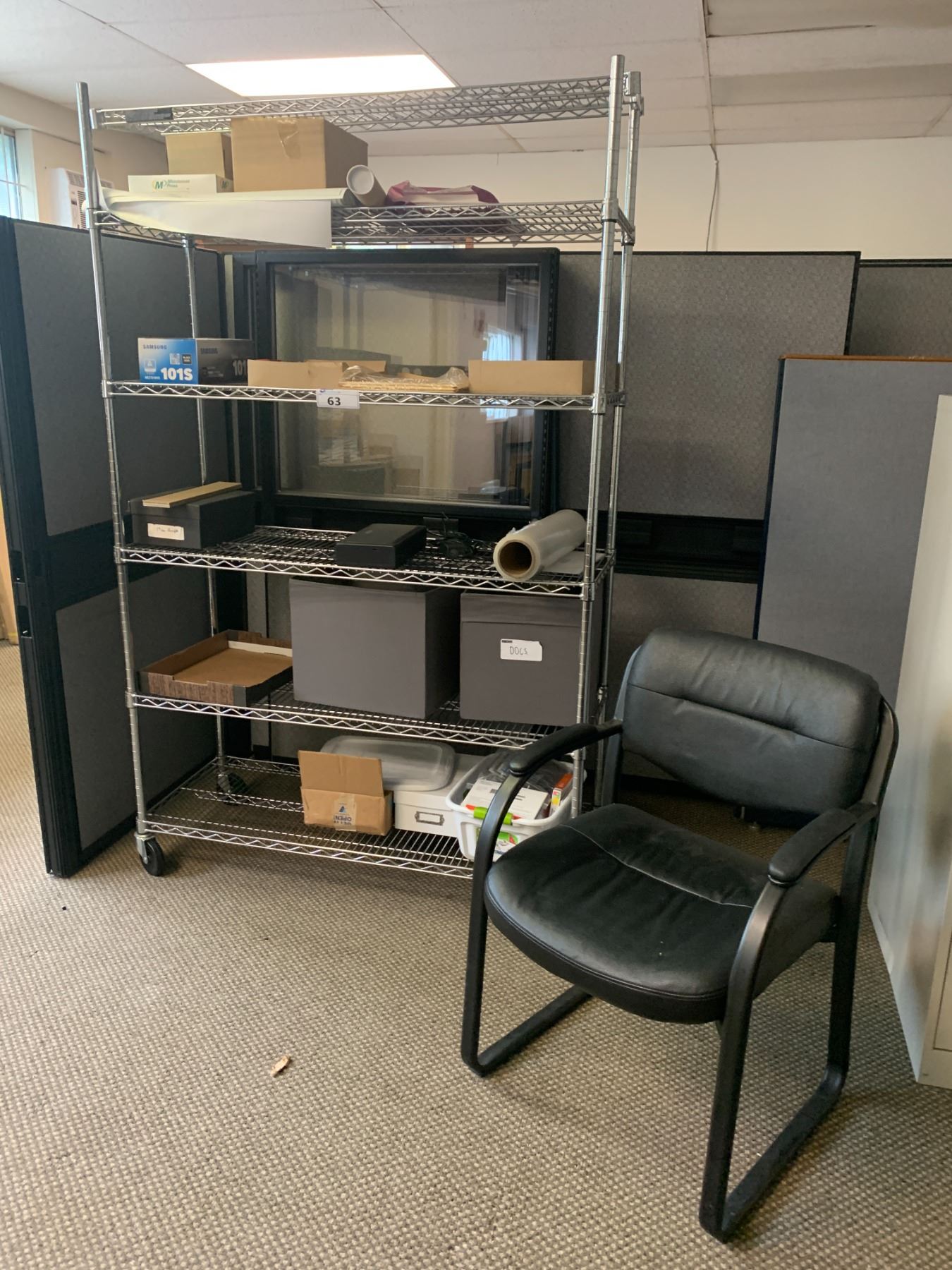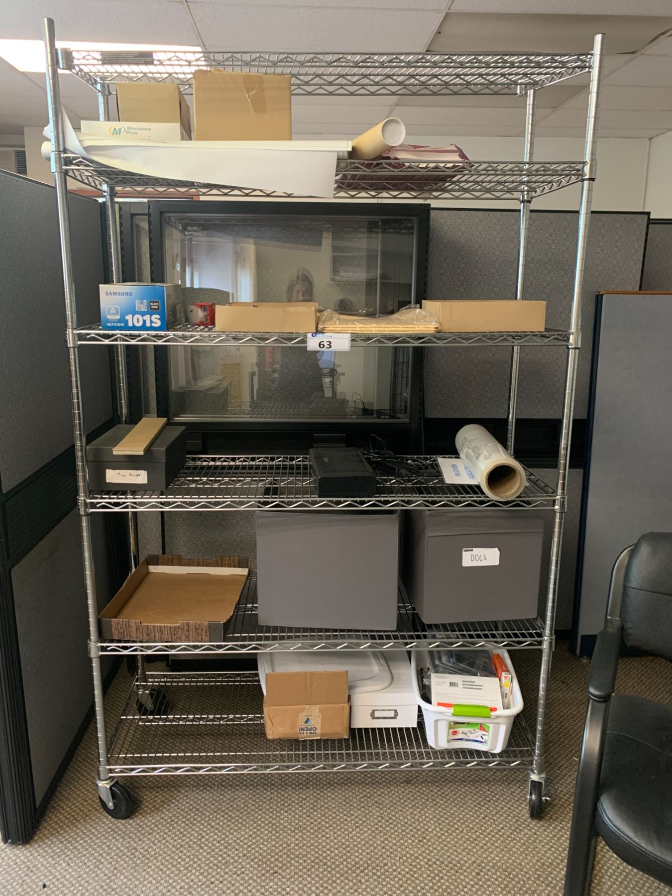 6' TALL S.S. METRO RACK ON WHEELS WITH CONTENTS AND CHAIR