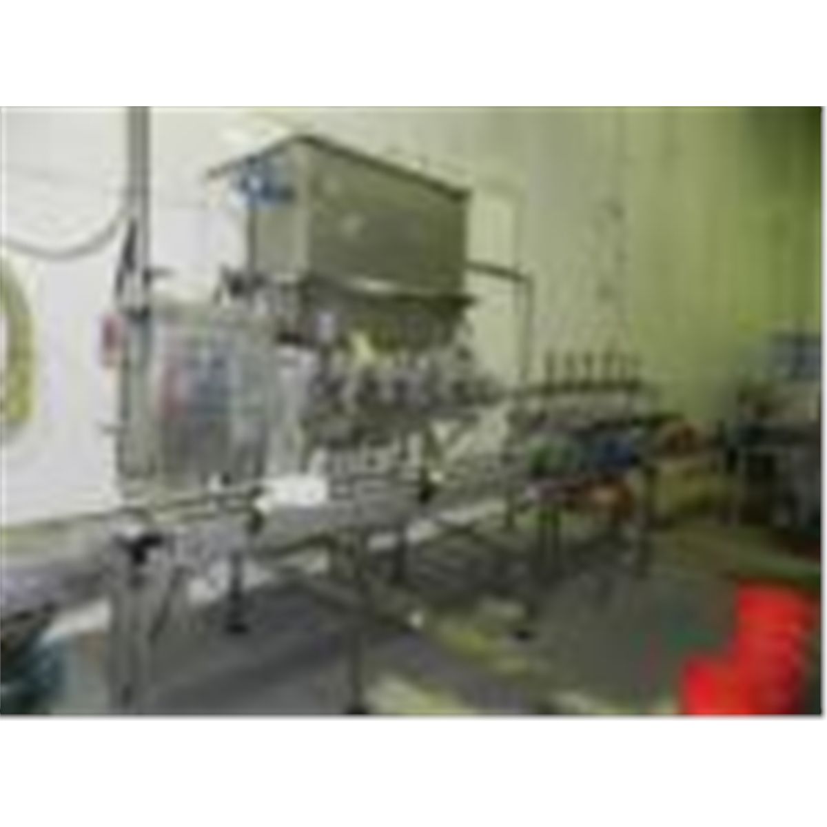 6-VALVE FILLER WITH 6-HEAD CAPPER, STAINLESS STEEL FRAME PRODUCT CONVEYOR WITH PLASTIC TABLE TOP CHAIN, ACCUMULATION TABLE AND PROGRAMMABLE CONTROLS