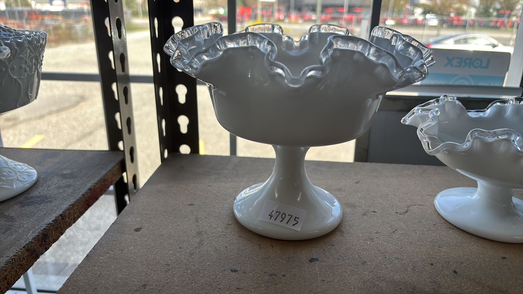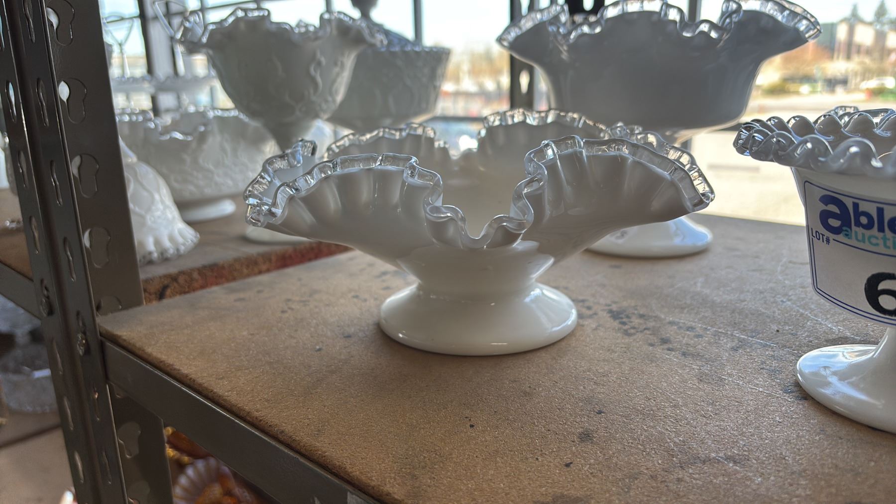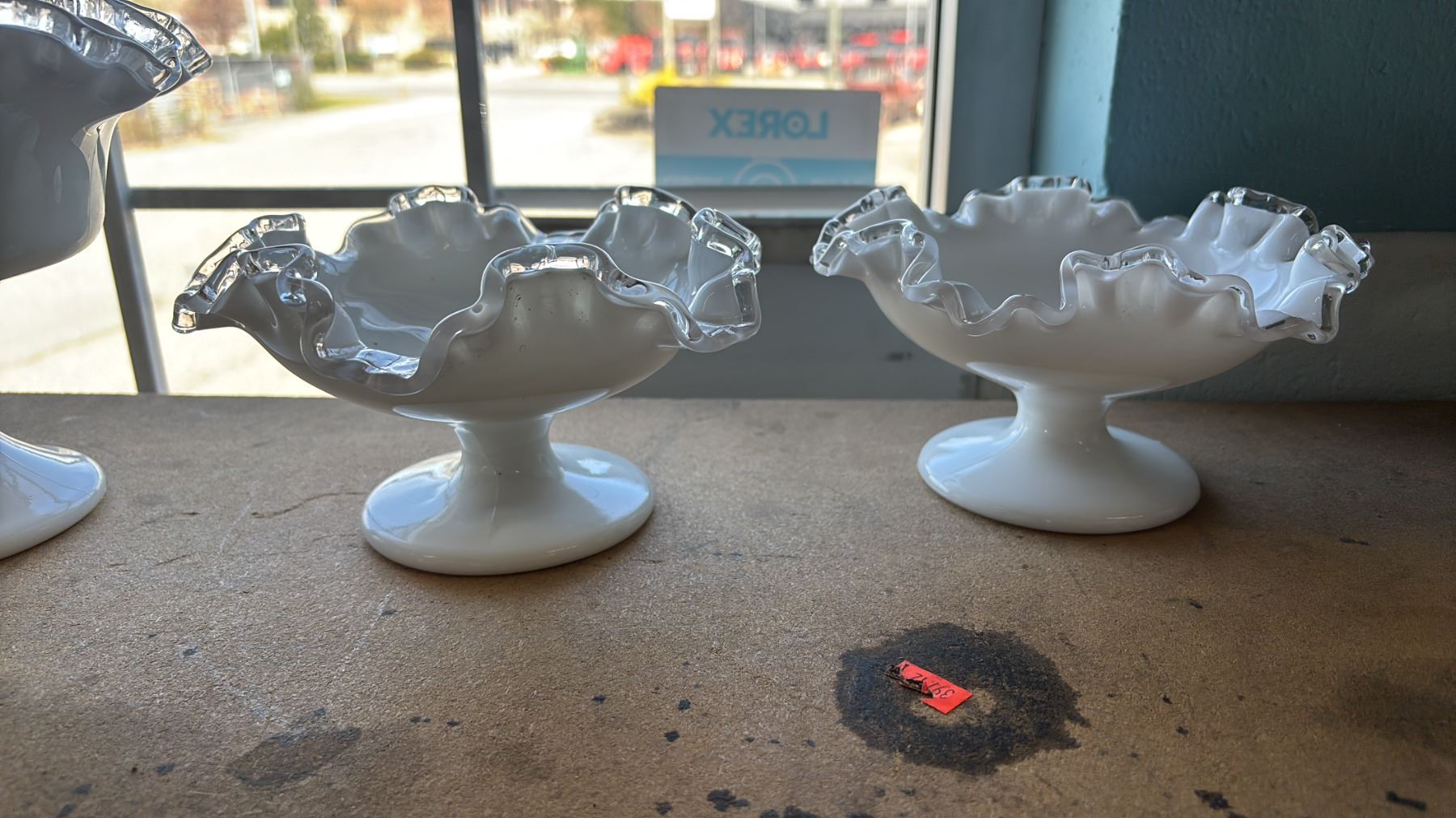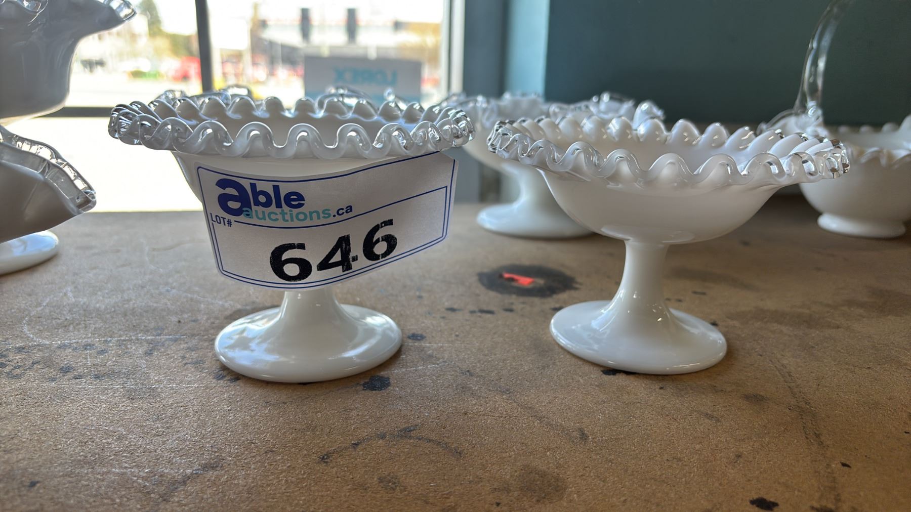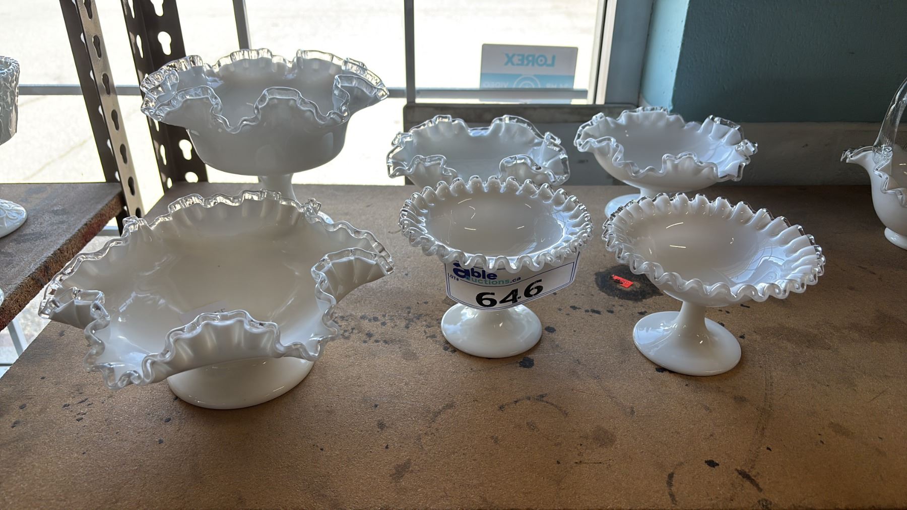 (6) VINTAGE FENTON SILVER CREST MILK GLASS PEDESTAL DISHES