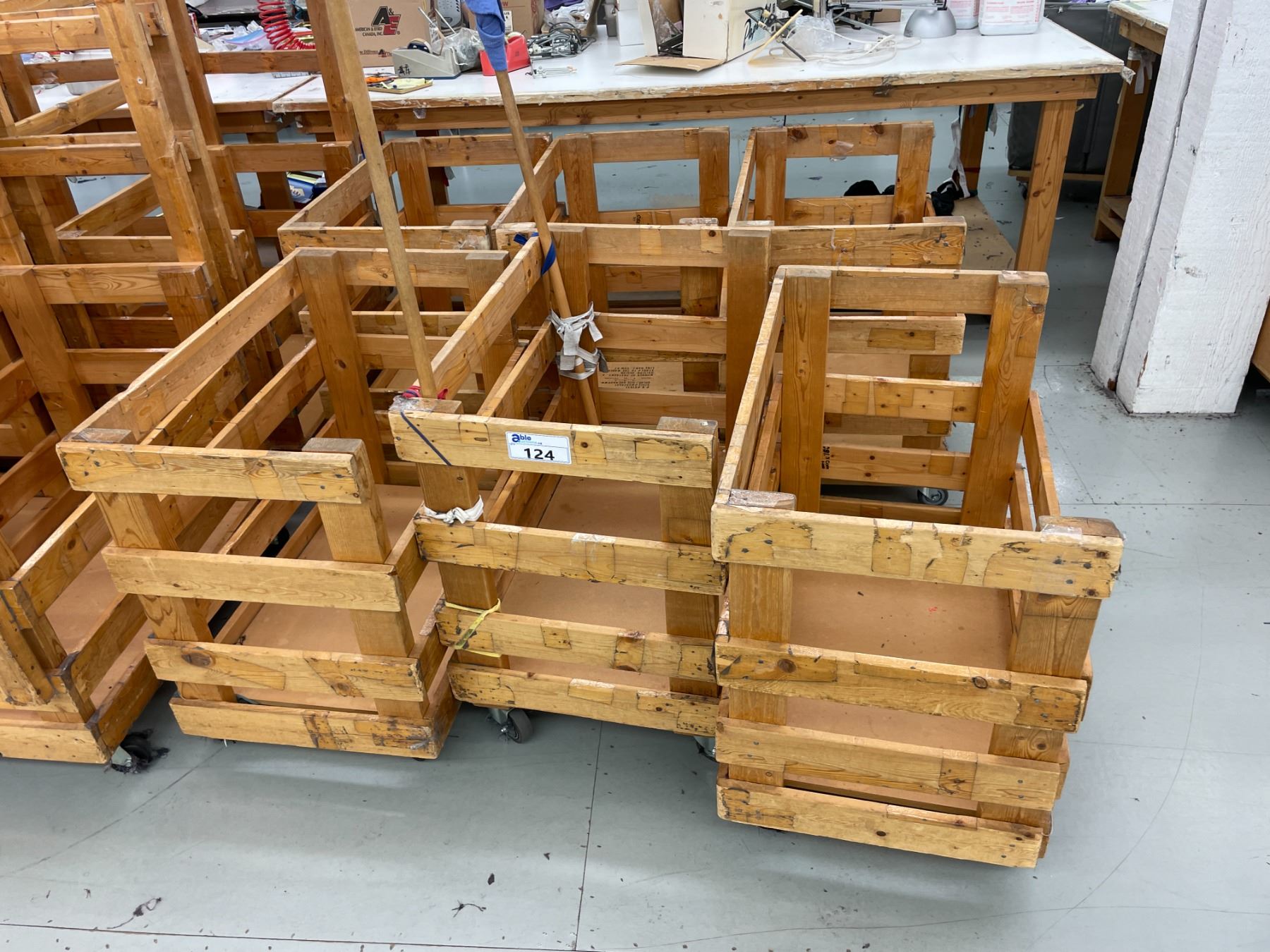 6 WOODEN 34"W X 21"D X 31"H COMMERCIAL MOBILE TEXTILE CART