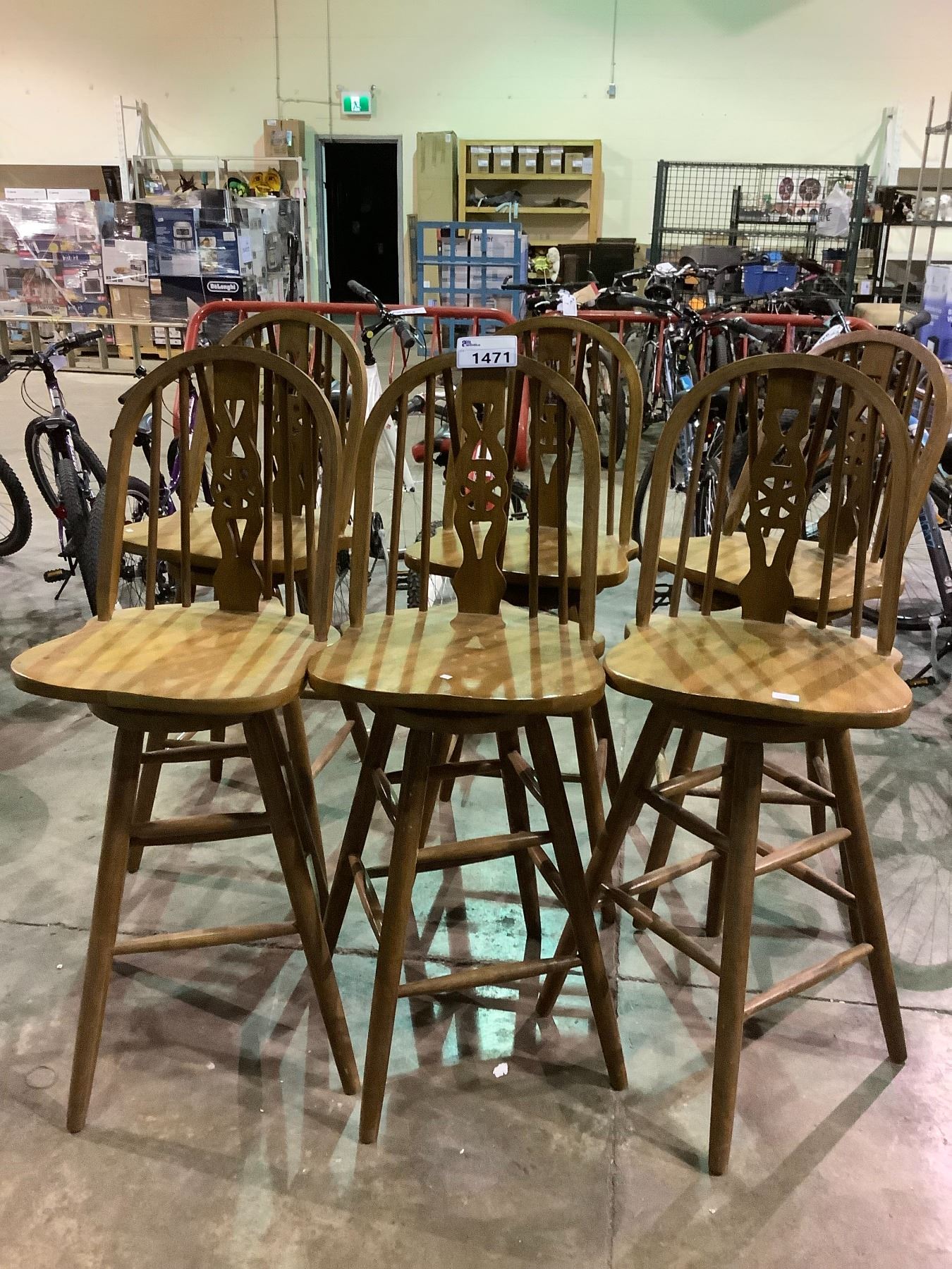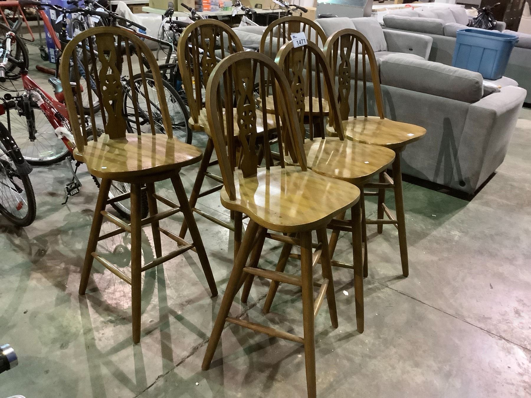 6 WOODEN SWIVEL TOP BAR CHAIRS