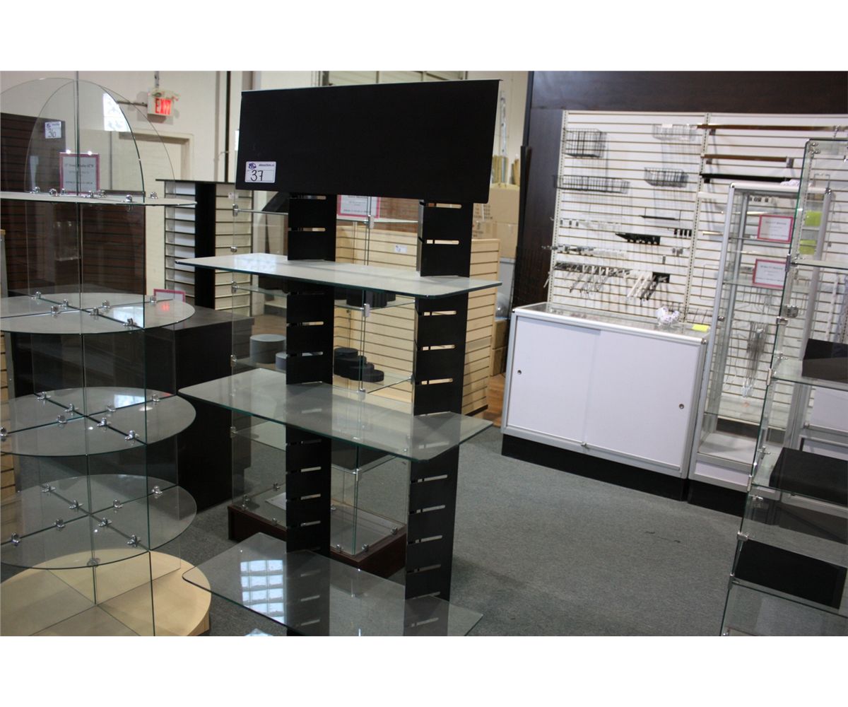 62" TALL GLASS SHELF SINGLE SIDED DISPLAY RACK