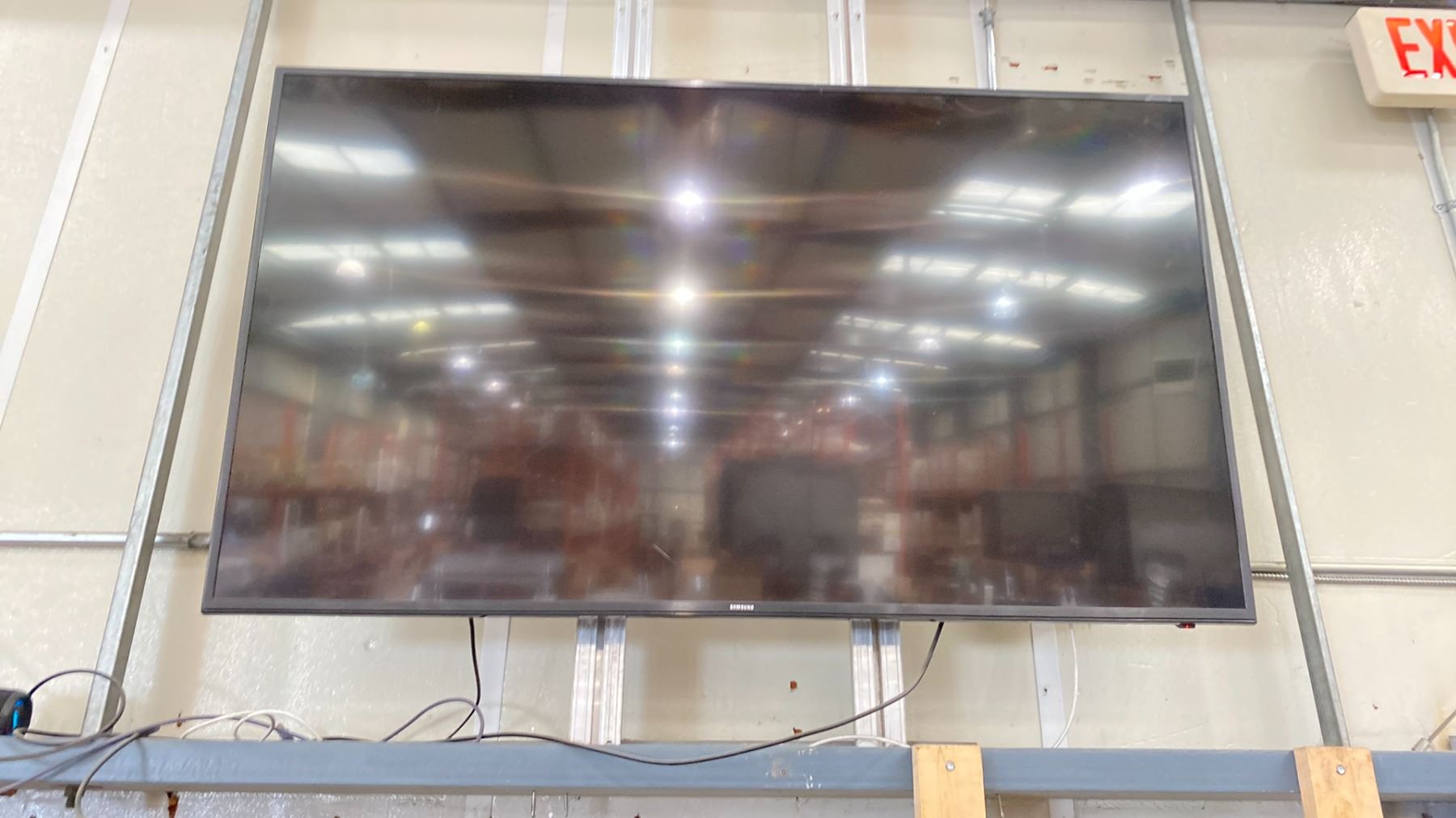65" SAMSUNG TV. NOTE THERE IS A SCRATCH NOTICED WHEN OFF BUT NOT VISIBLE WHEN TURNED ON *REQUIRES TOOLS & LADDER FOR REMOVAL*