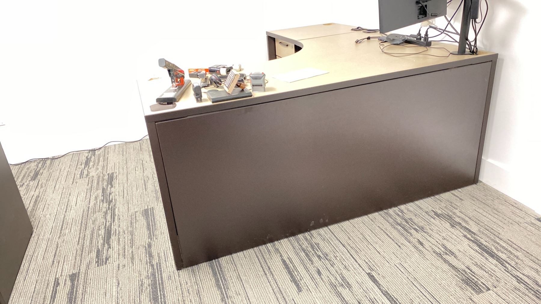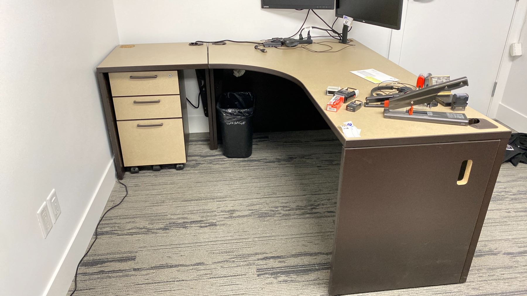 66"X66" CORNER DESK WITH MOBILE DRAWER PEDESTAL NO CONTENTS