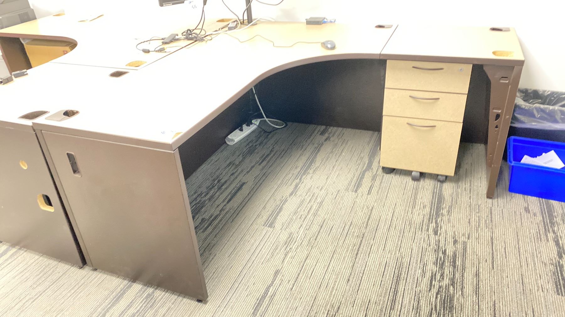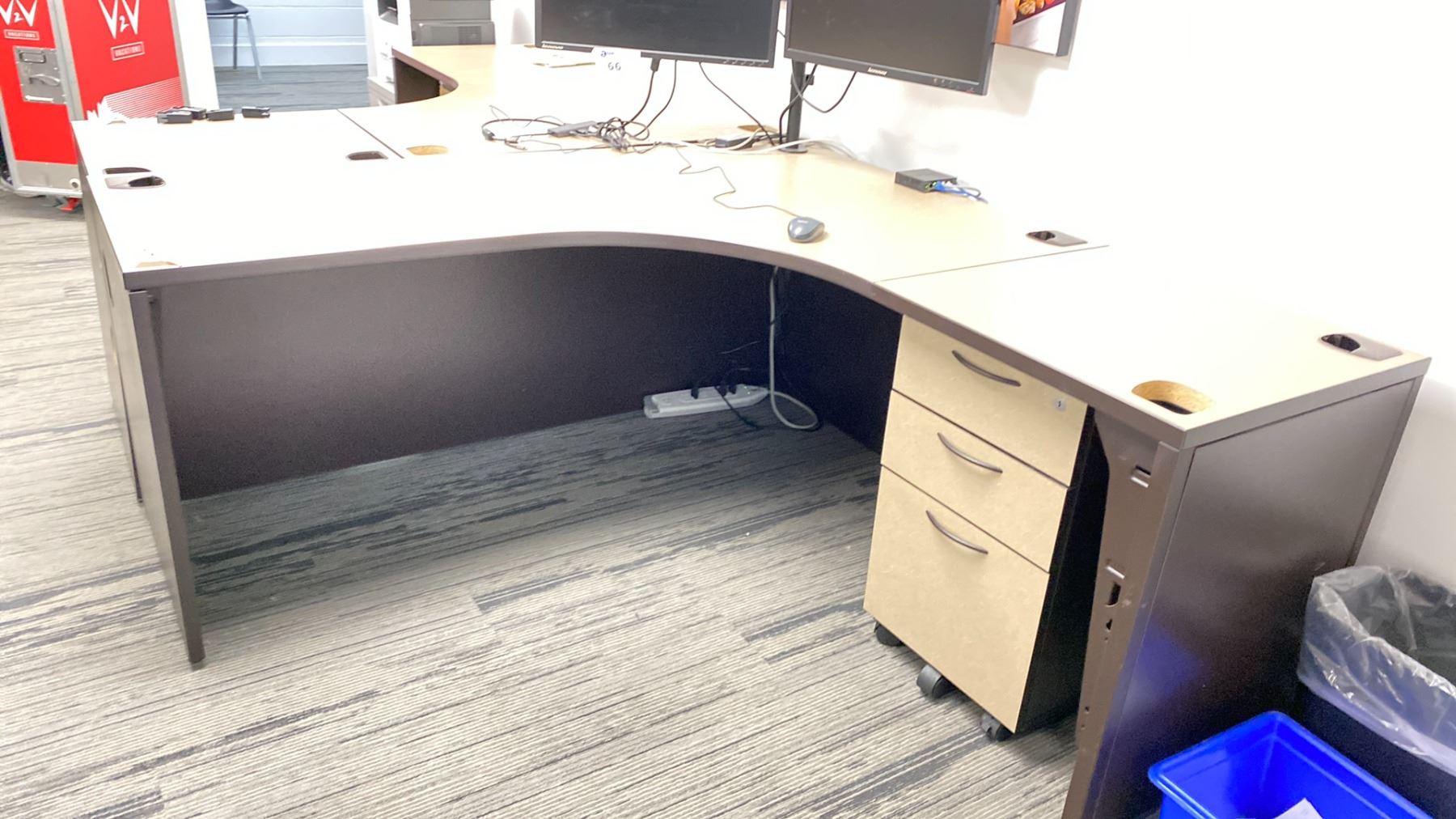 66"X66" CORNER DESK WITH MOBILE DRAWER PEDESTAL NO CONTENTS