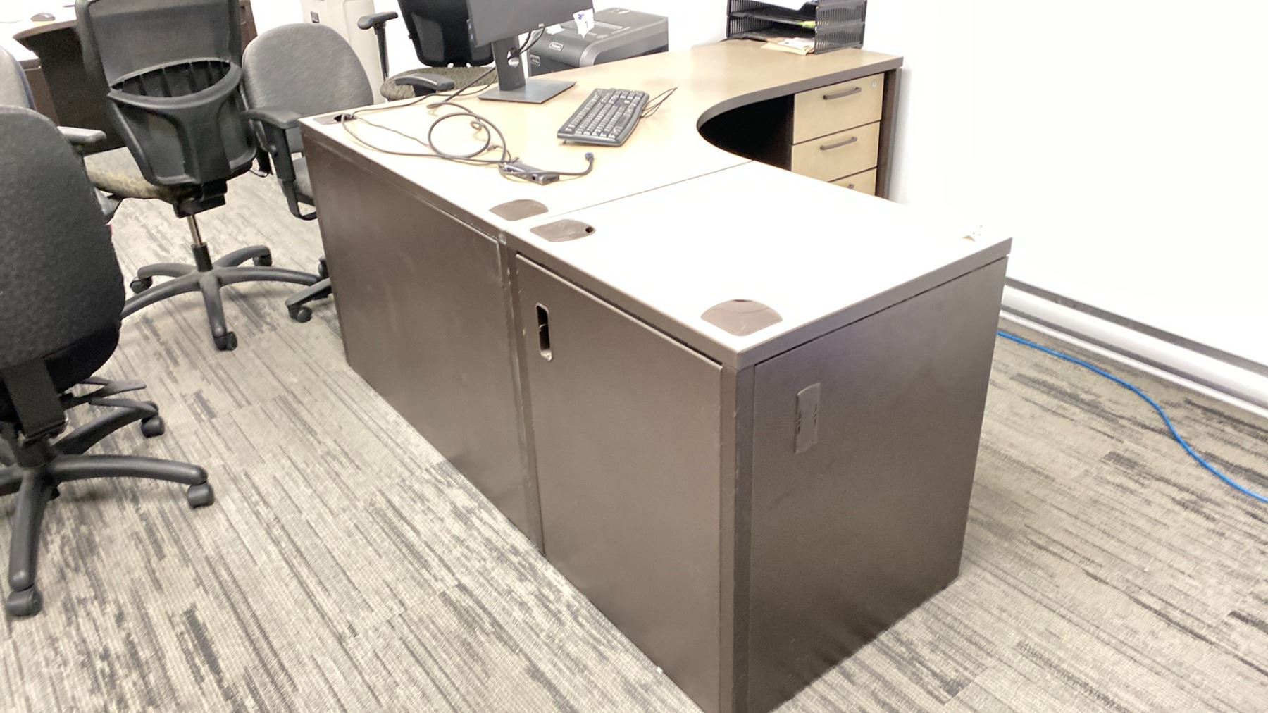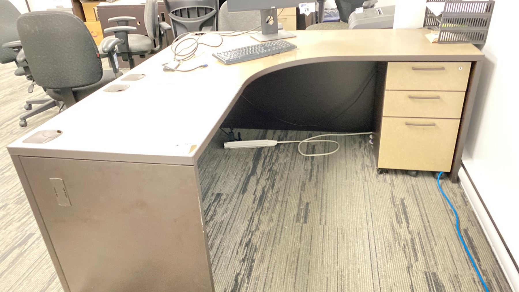66"X66" CORNER DESK WITH MOBILE DRAWER PEDESTAL NO CONTENTS