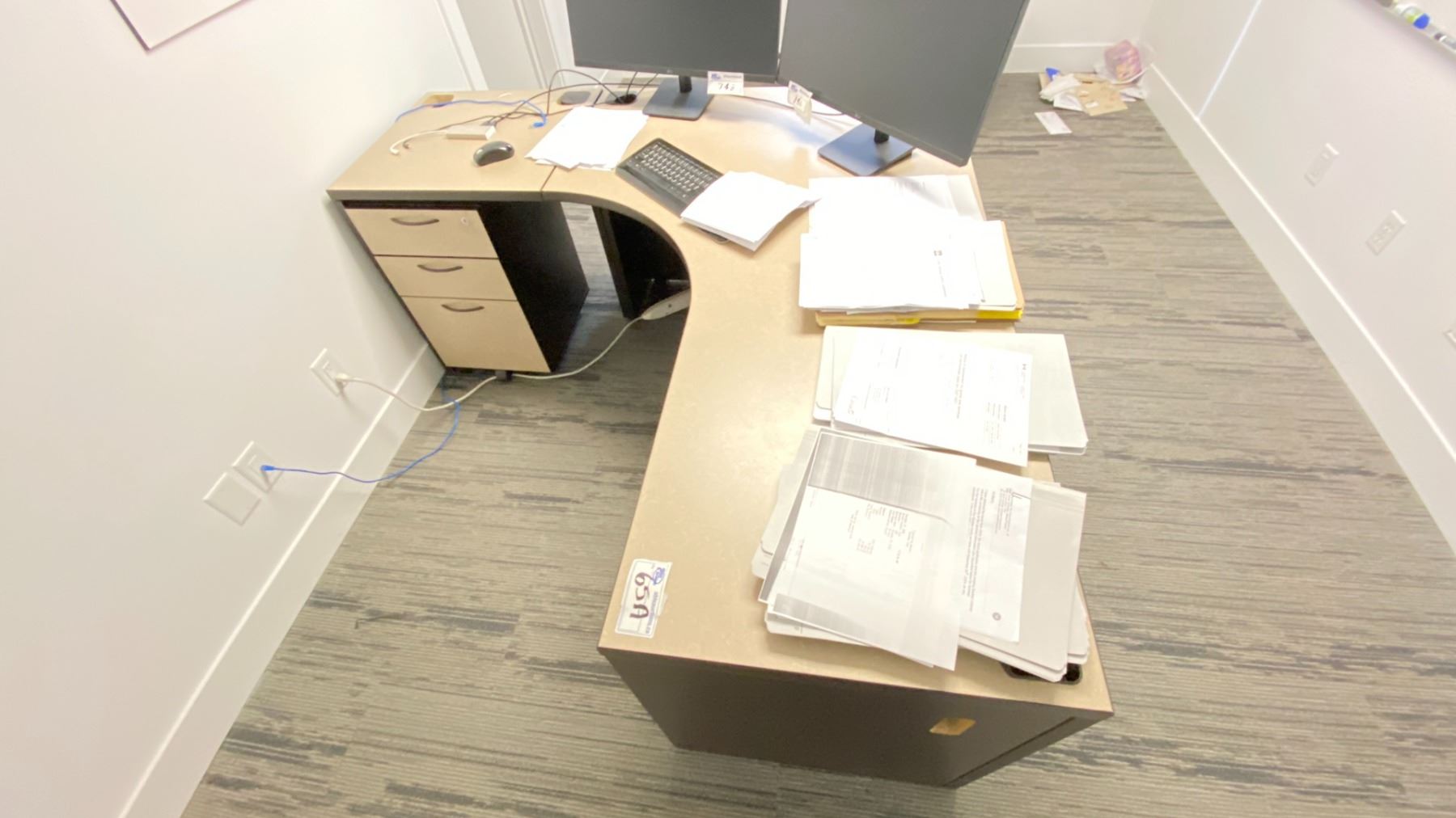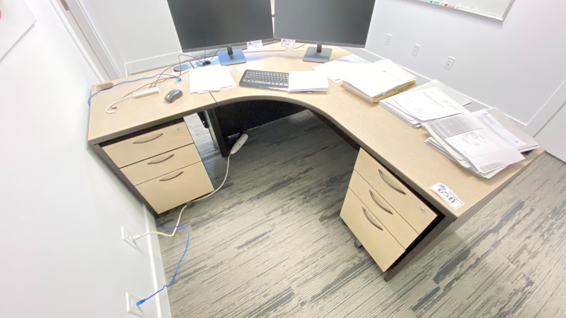 66"X66" CORNER DESK WITH MOBILE DRAWER PEDESTAL NO CONTENTS