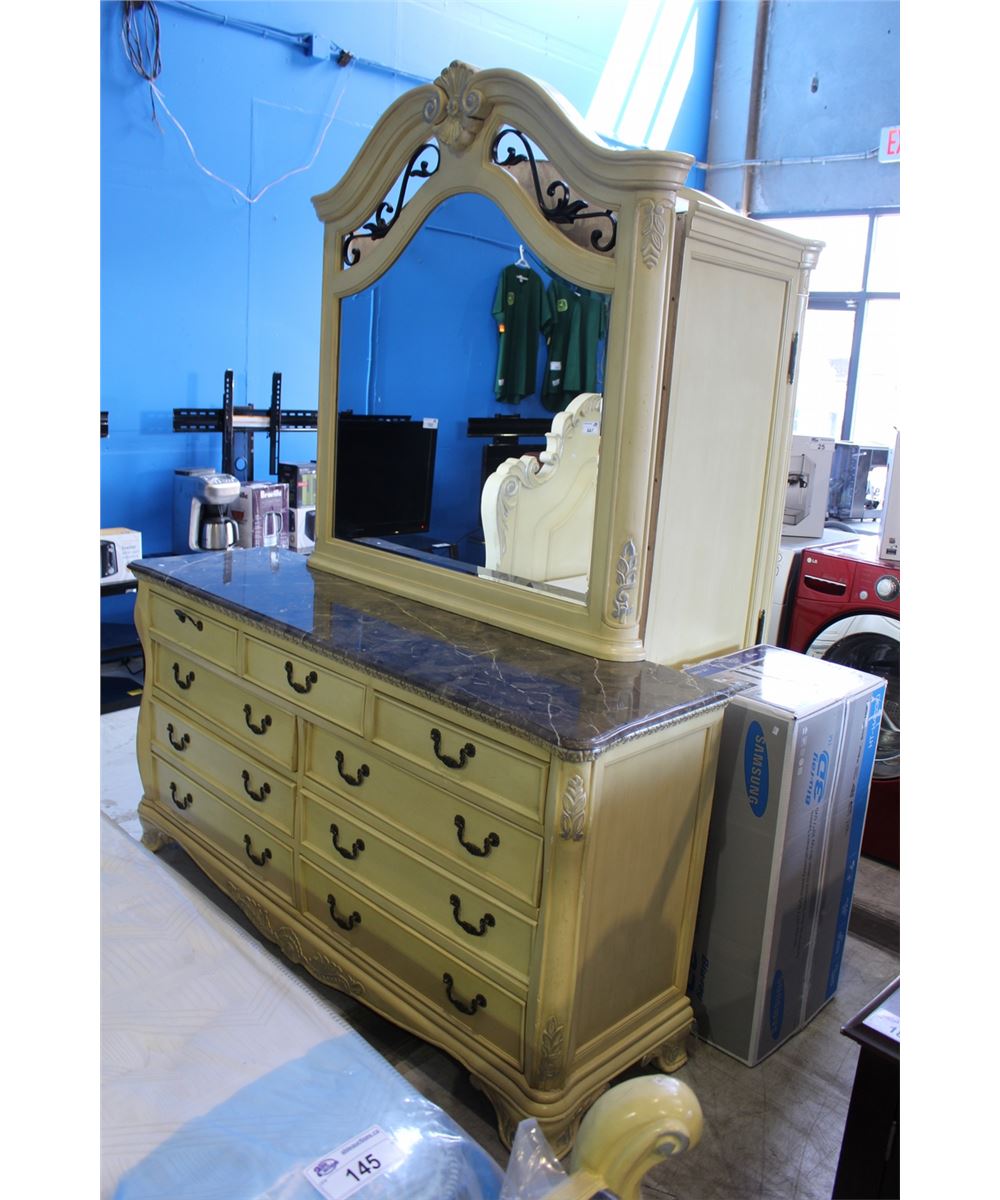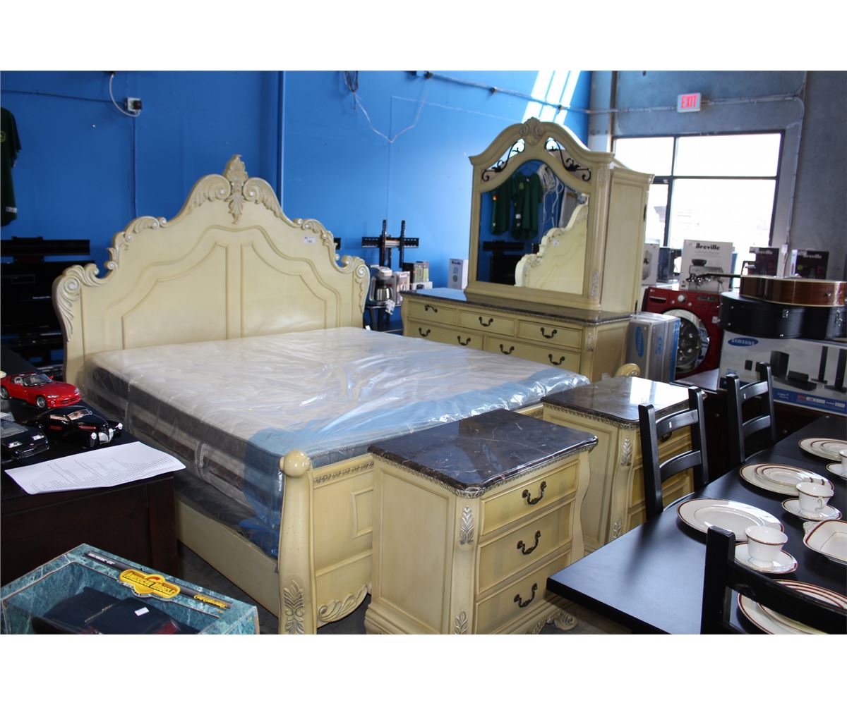 6PC KING SIZE BEDROOM SUITE; KING SIZE BED HEADBOARD FOOTBOARD AND RAILS, 9 DRAWER DRESSER WITH MIRROR, ARMOIRE, AND 2 3DRAWER NIGHT STANDS
