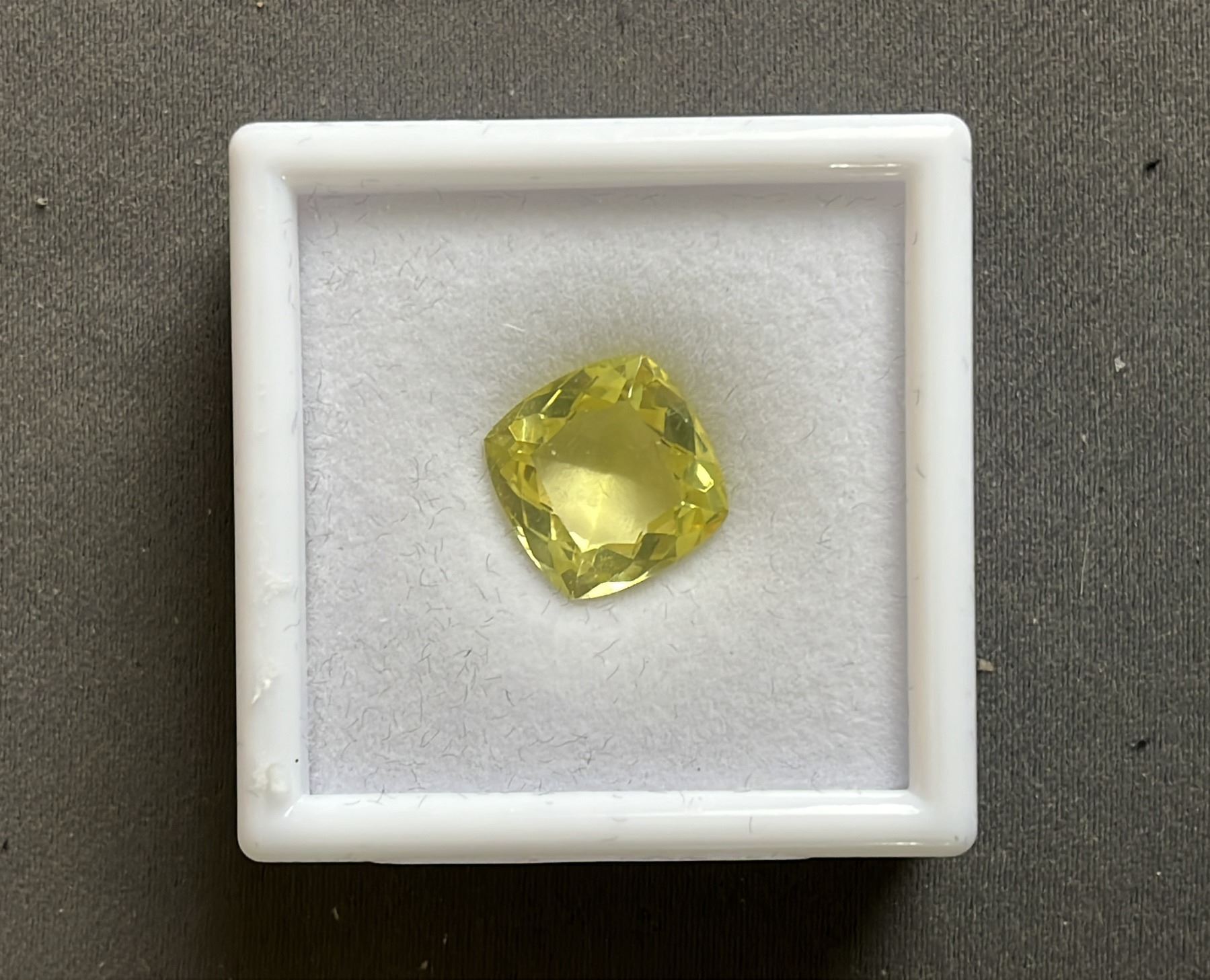 7.1CT CUSHION CUT NATURAL LEMON AMETHYST: UNTREATED (12.1MM X 12.1MM)