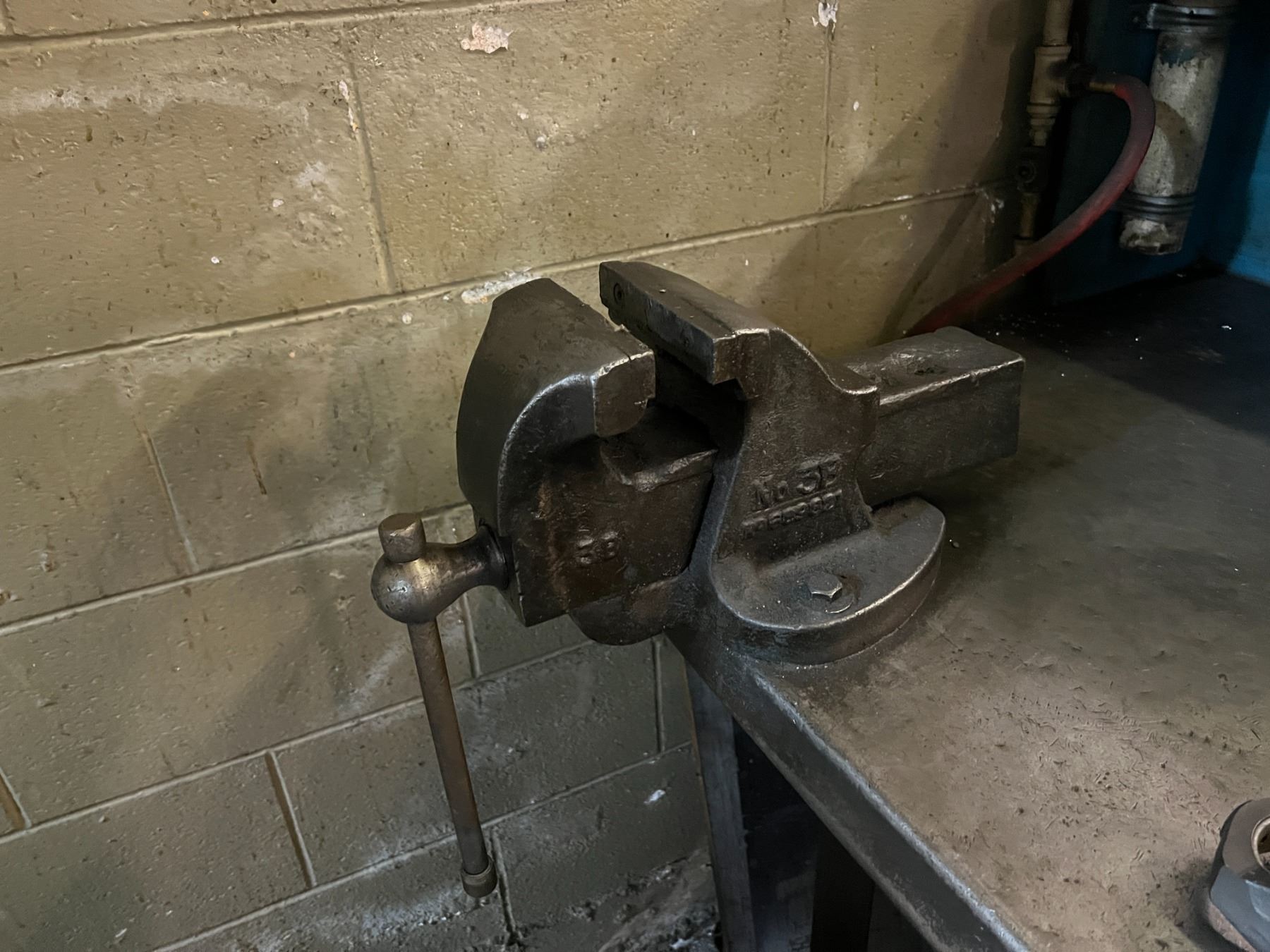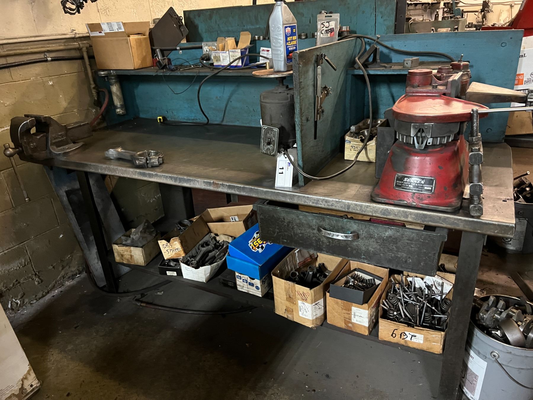 7'3" METAL WORK BENCH CONTENTS NOT INCLUDED HAS 5" METAL VICE AND SANDER