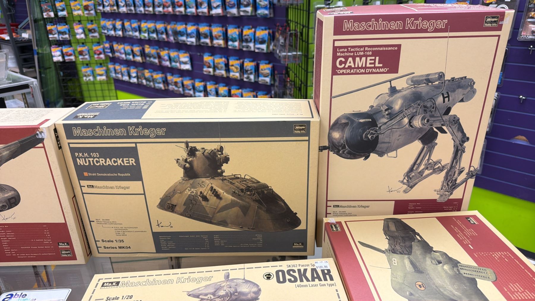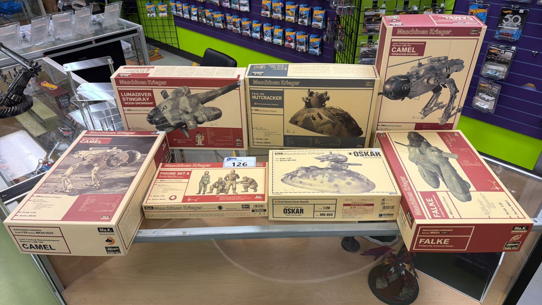 (7) ASSORTED HASEGAWA MODEL KITS INCLUDING; LUNA TACTICAL RECONNAISSANCE MACHINE LUM-168 CAMEL "OPERATION DYNAMO", MASCHINEN KRIEGER P.K.H. 103 NUTCRACKER, MASCHINEN KRIEGER LUNADIVER STINGRAY "MOON SNOWMAN" & MORE
