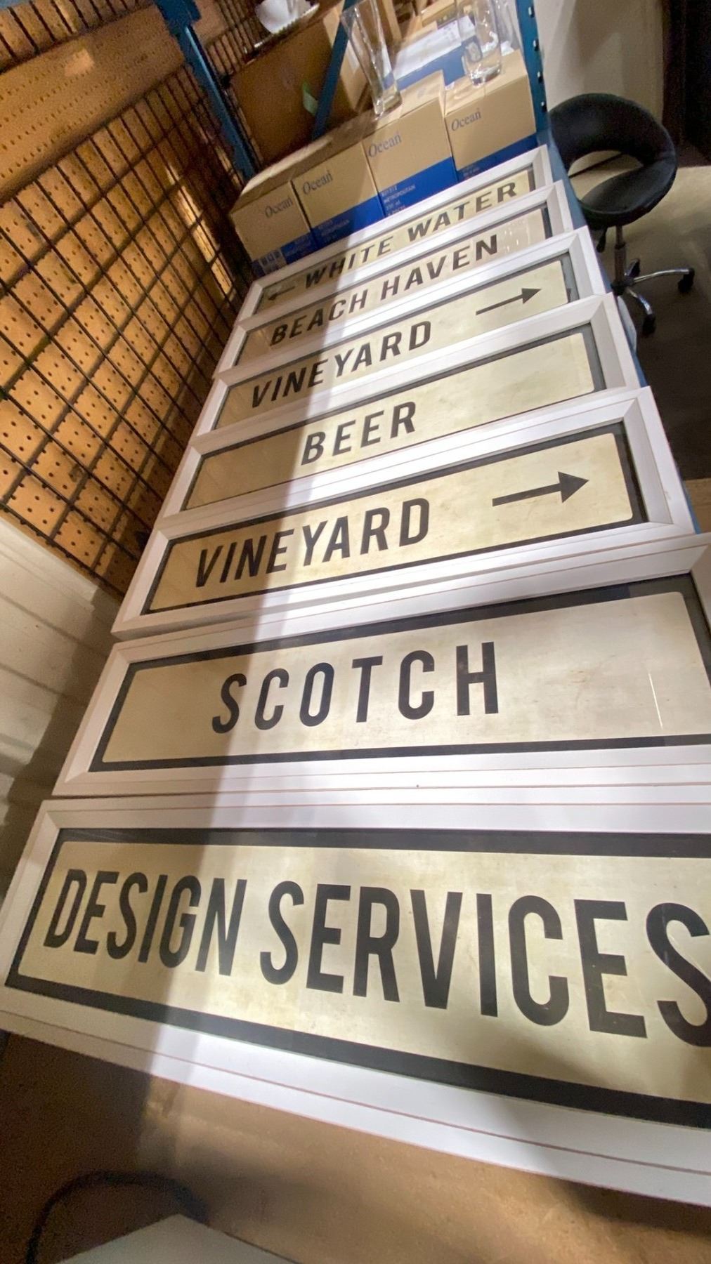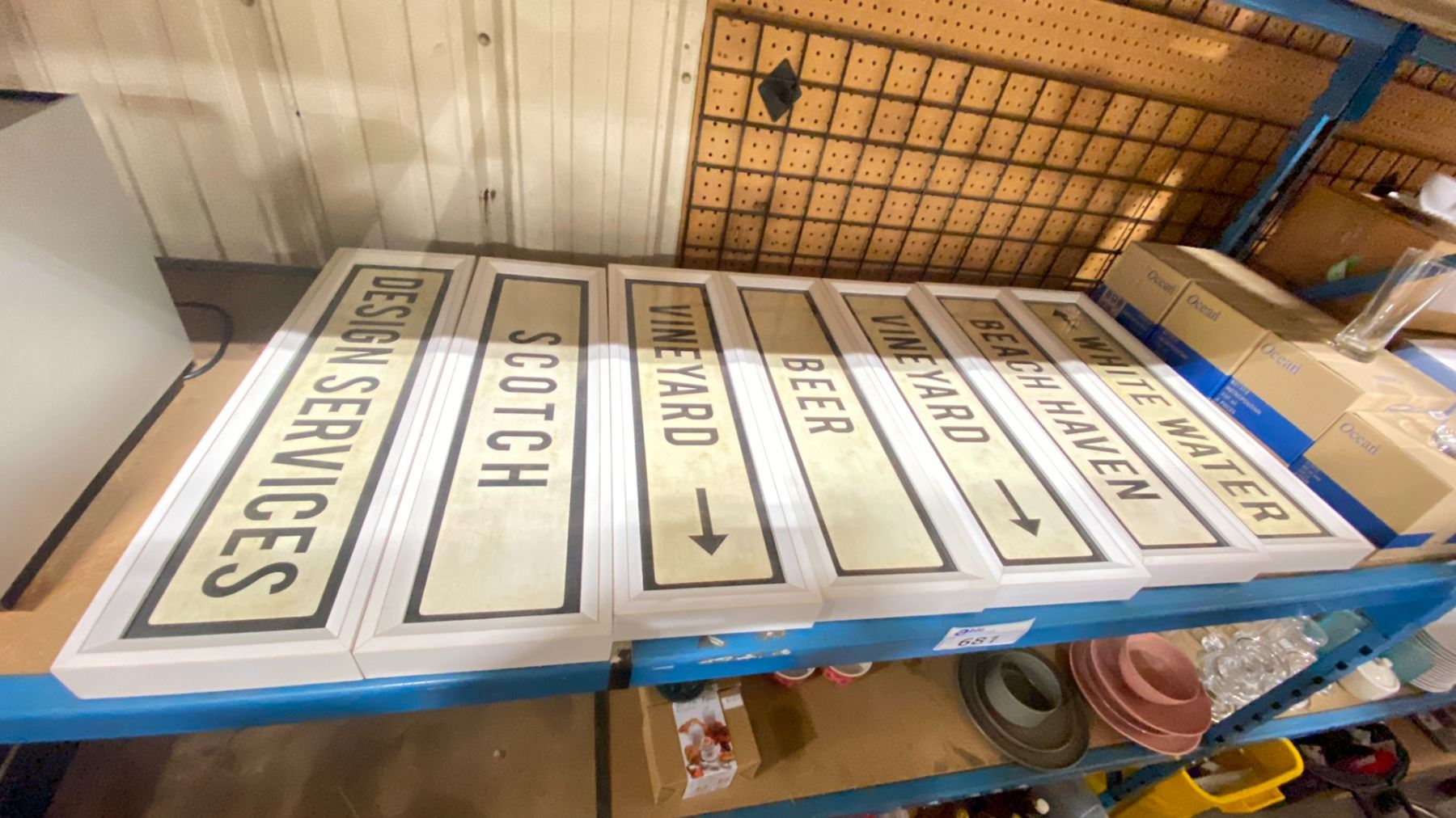 7 ASSORTED WHITE FRAMED STREET SIGN WALL ART