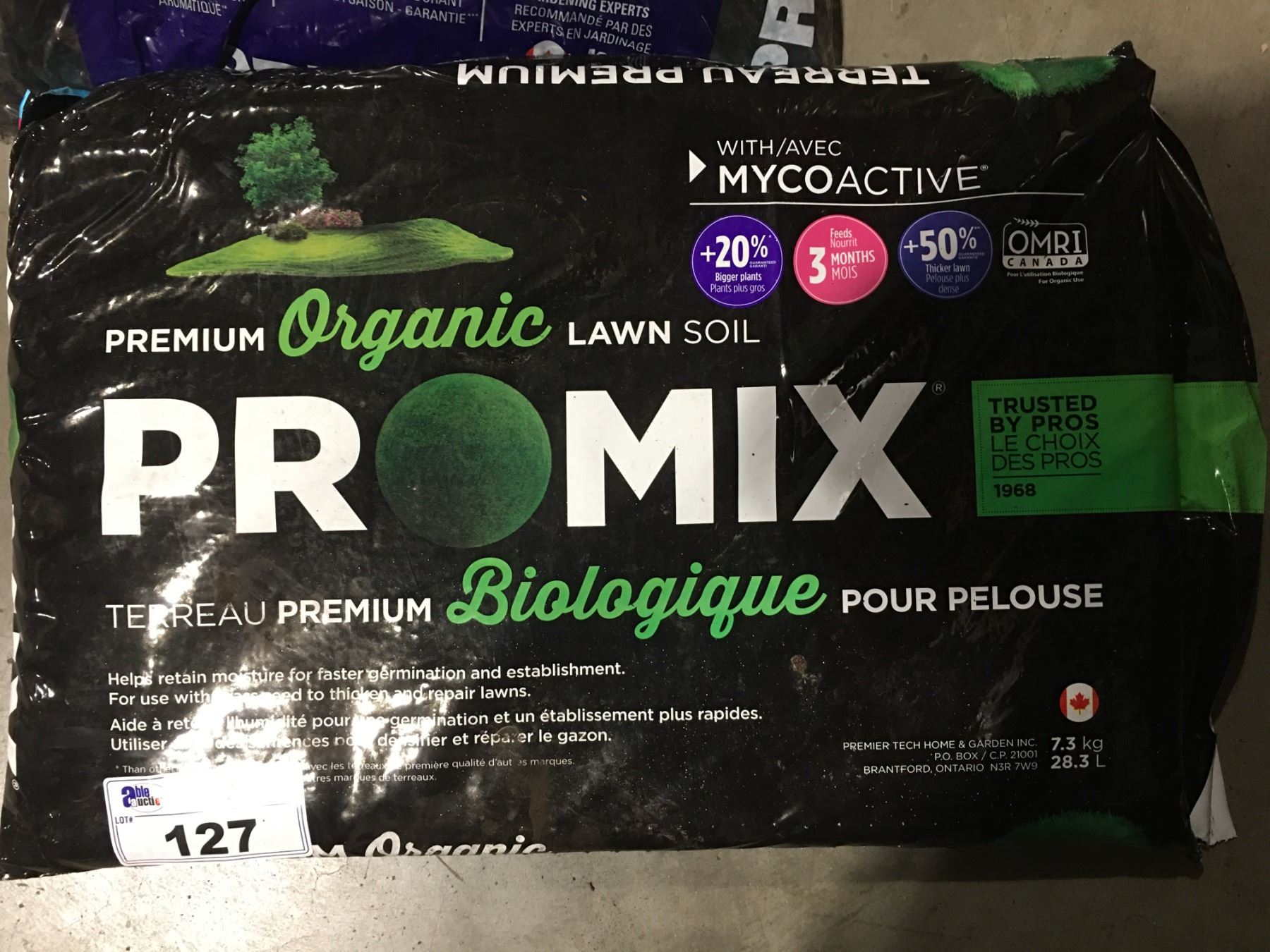 7 BAGS ORGANIC PRO-MIX TOP SOIL (2 BAGS OPEN)