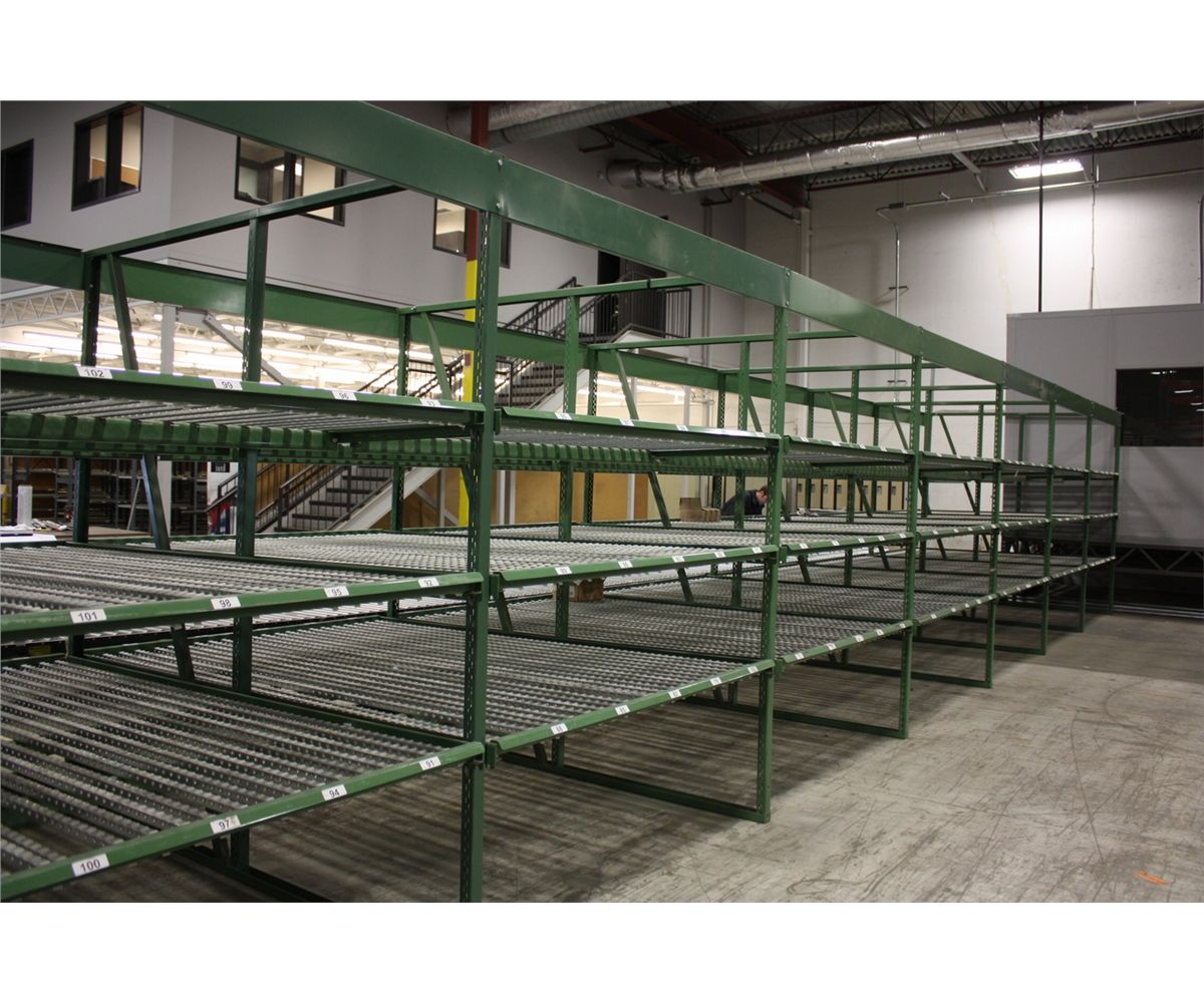 7 BAY GREEN PRODUCT CONVEYOR RACKING