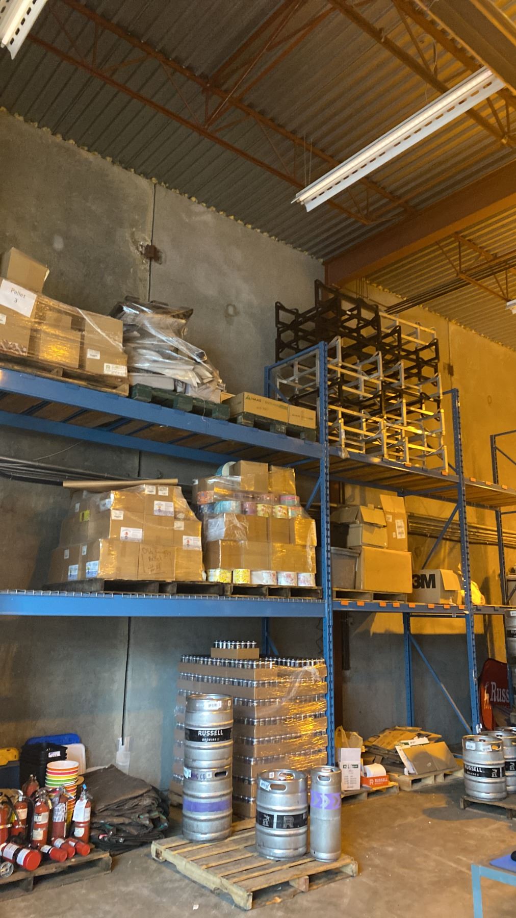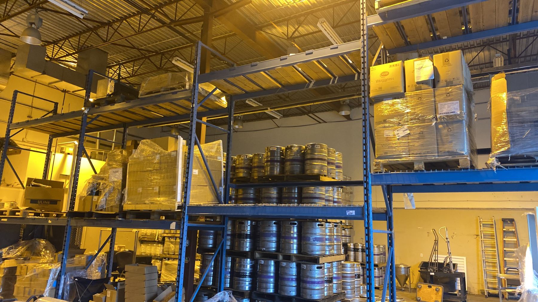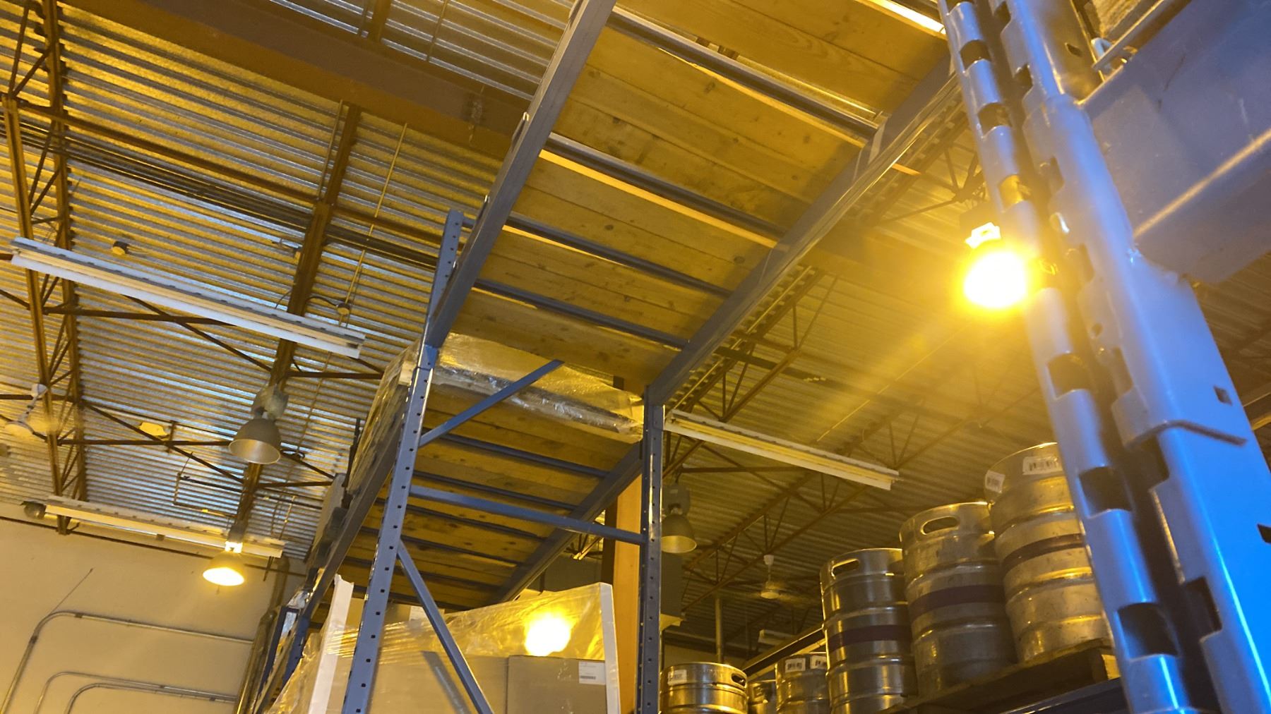 7 BAYS OF BLUE PALLET RACKING - (9) 16FT UPRIGHTS, (24) 9FT & (4) 12FT SIDE RAILS WITH MOSTLY WOOD SHELVING AND SOME MESH DECK **BUYER REQUIRES ALL TOOLS, EQUIPMENT AND HELP FOR REMOVAL - MUST BE DISASSEMBLED** **ALL NECESSARY PROTECTIVE GEAR AND FALL GEAR FOR 10FT HEIGHTS AND ABOVE** *LAST DAY PICK UP*