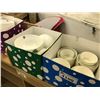 7 BINS OF ASSORTED PLATES, BOWLS AND MORE