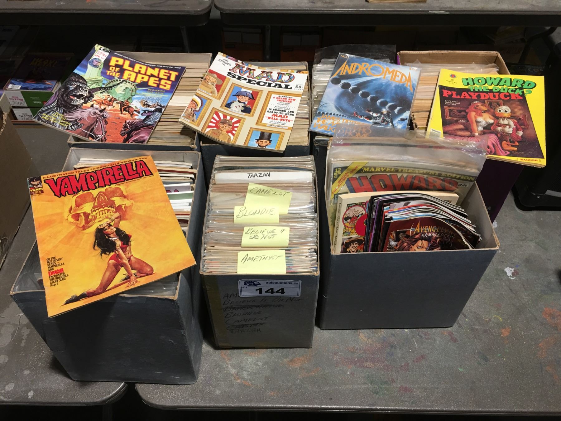 7 BOXES OF ASSTD VINTAGE COMICS & SATIRE MAGAZINES
