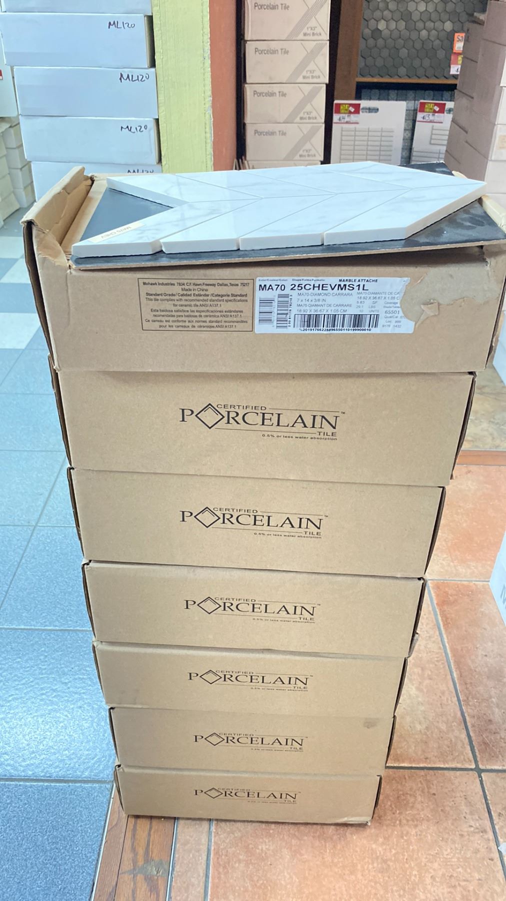 7 BOXES OF CERTIFIED PORCELAIN TILE IN MA70 CHEV 5.63SQ.FT. PER BOX APPROX 39.41SQ.FT. TOTAL