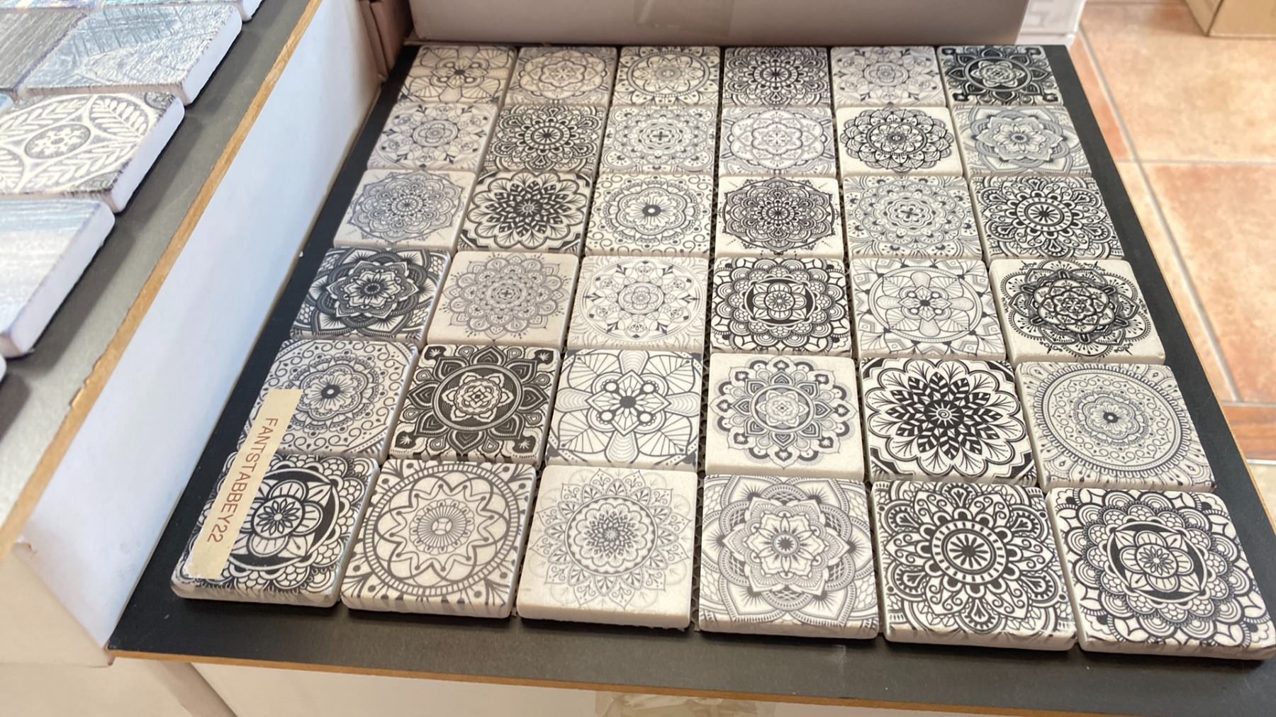 7 BOXES OF MARBLE MOSAIC TILE IN FANTSTABBEY22 11 X 1SQ.FT. SHEETS PER BOX APPROX 77SQ.FT. TOTAL