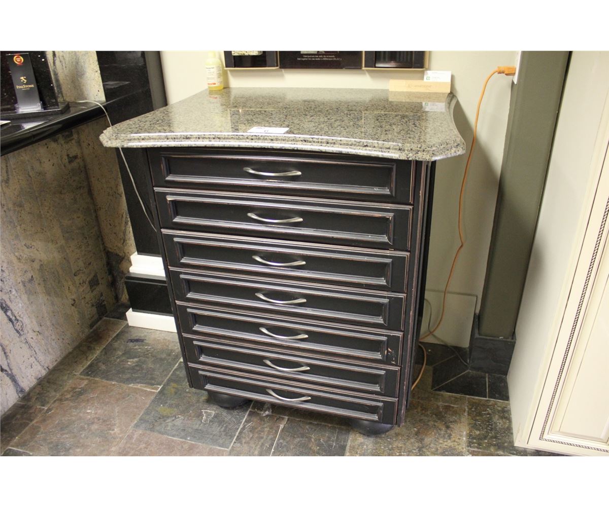 7 DRAWER DARKWOOD GRANITE TOP STORAGE CABINET