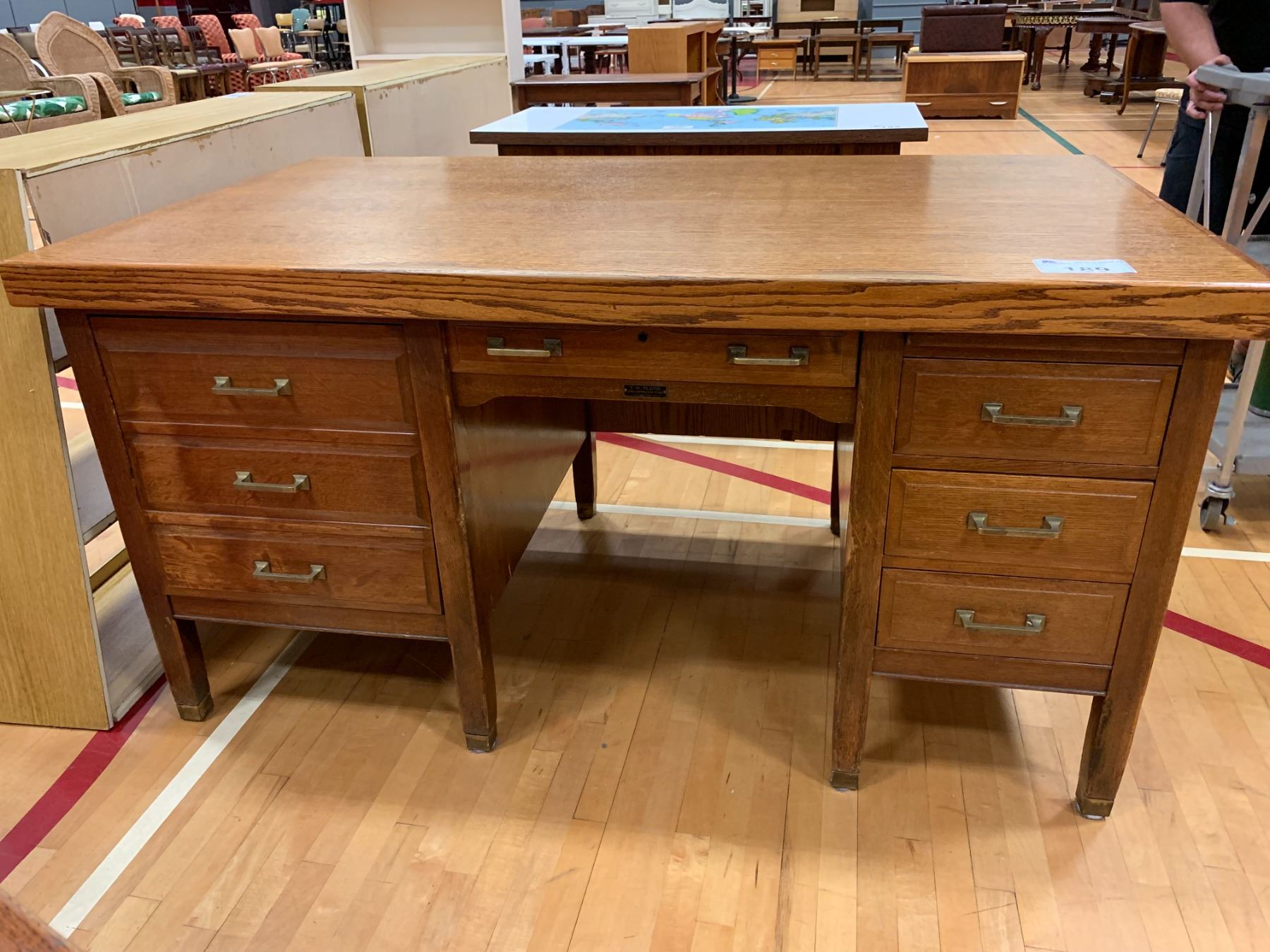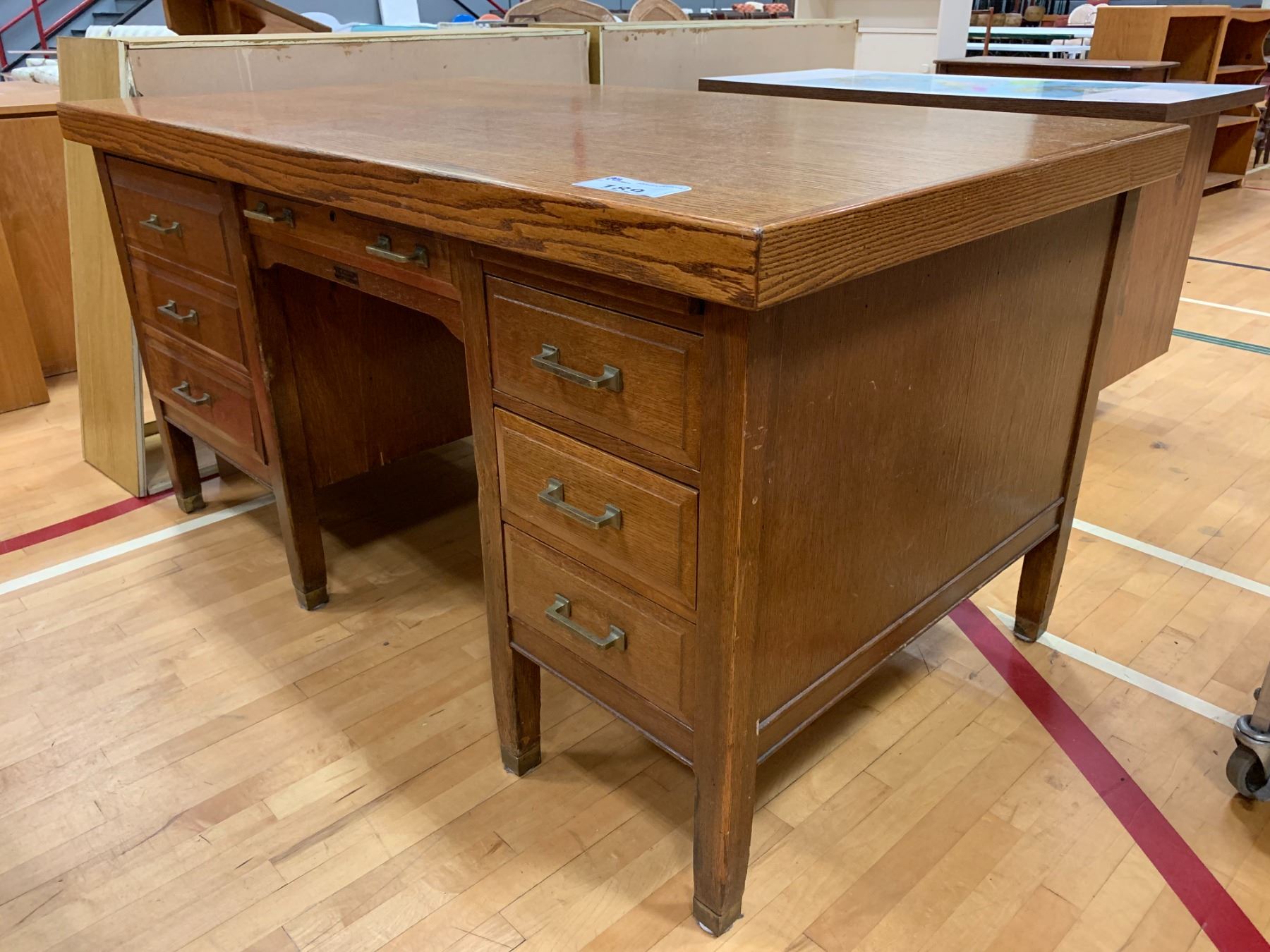 7 DRAWER WOOD LOCKING DESK (NO KEY) APPROX 32"X61"X35"