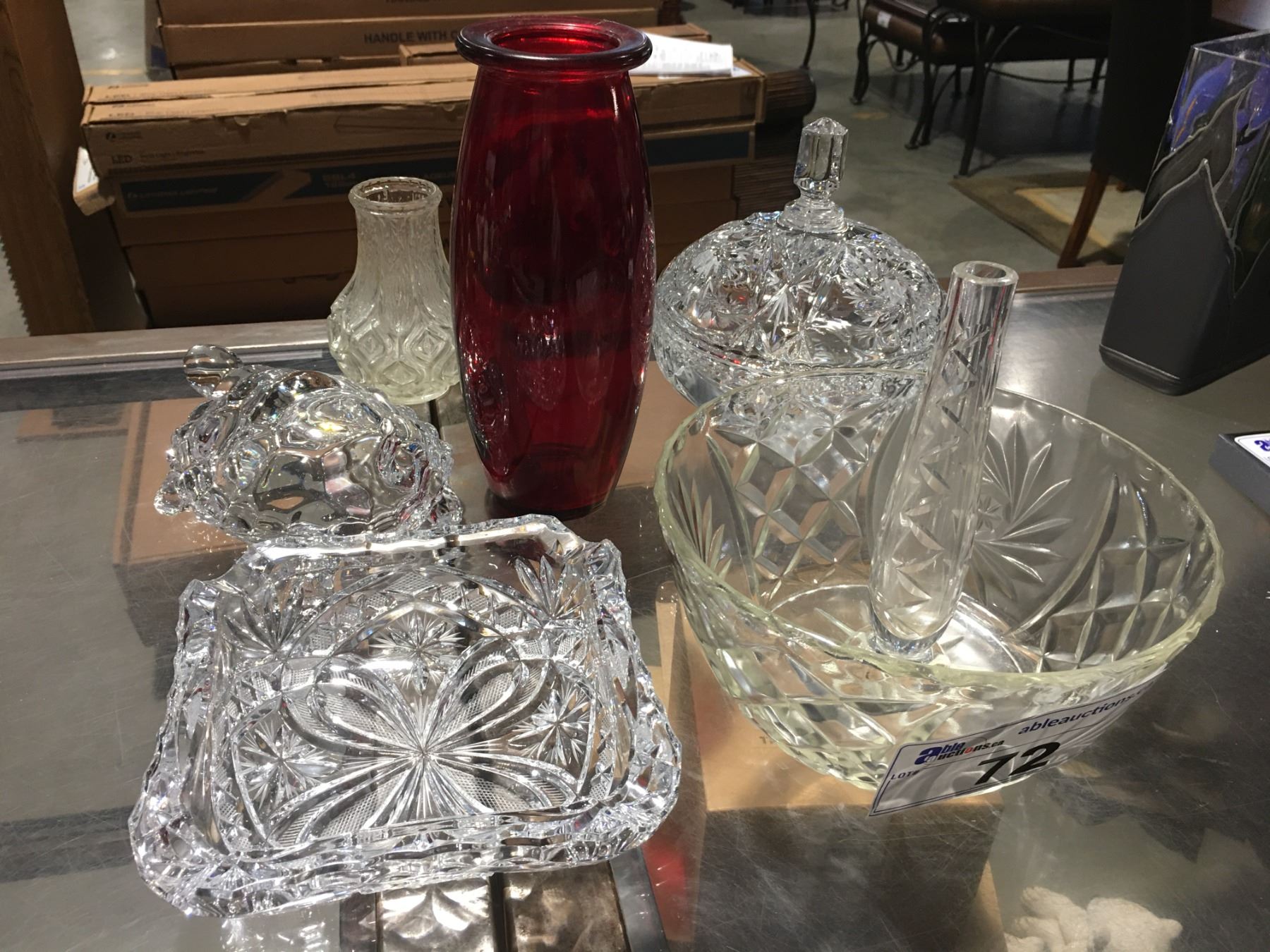 7 PCE DECORATIVE ITEMS PINWHEEL CANDY DISH/GLASS TURTLE/ASHTRAY/VASES/PINWHEEL BOWL & BUD VASE