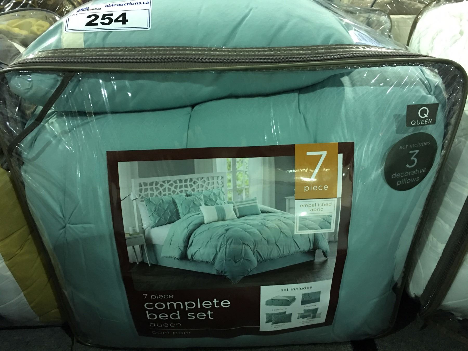 7 PCS QUEEN SIZED COMPLETE BED SET - POMPOM