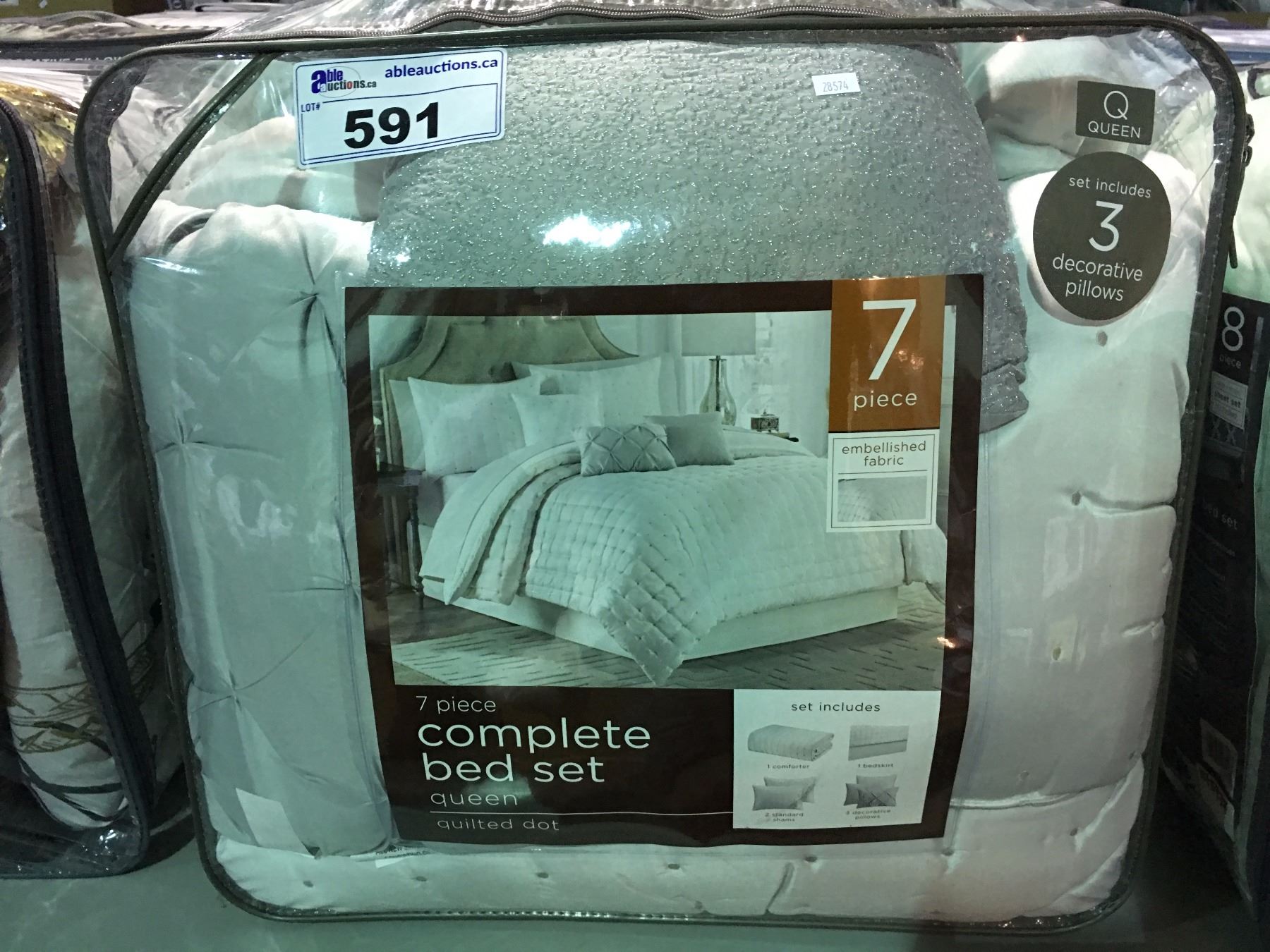 7 PCS QUEEN SIZED COMPLETE BED SET - QUILTED DOT