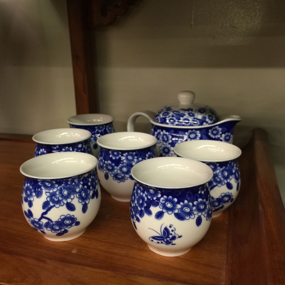 7 PIECE CHINESE MING STYLE HAND PAINTED PORCELAIN TEA SET