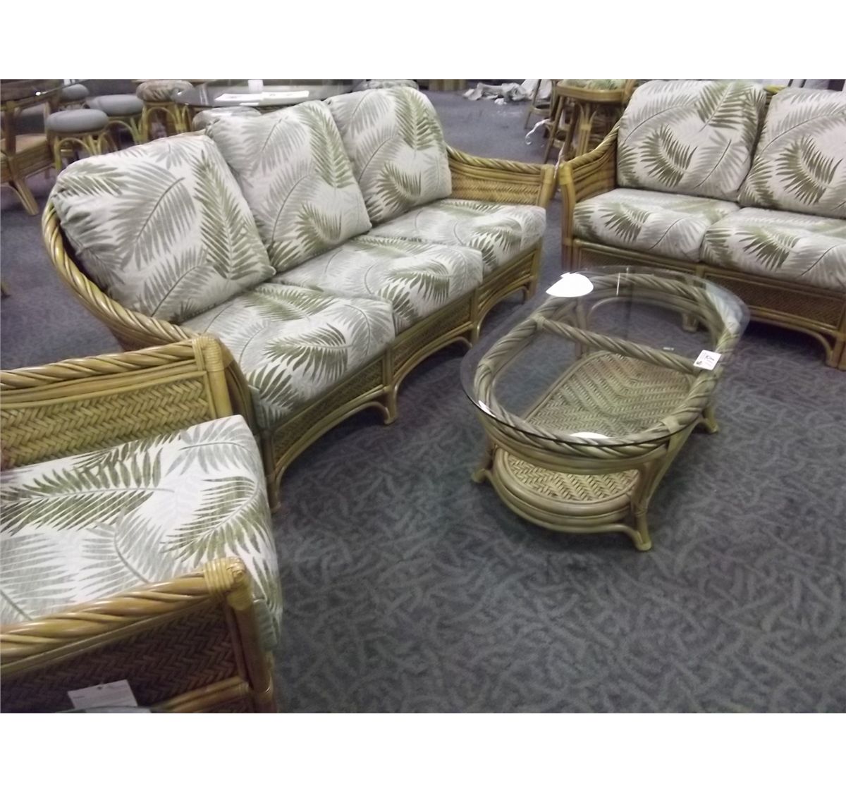 7 PIECE FURNITURE SET INC: SOFA, LOVE SEAT, CLUB CHAIR, COFFEE TABLE, 2 END TABLES & OTTOMAN