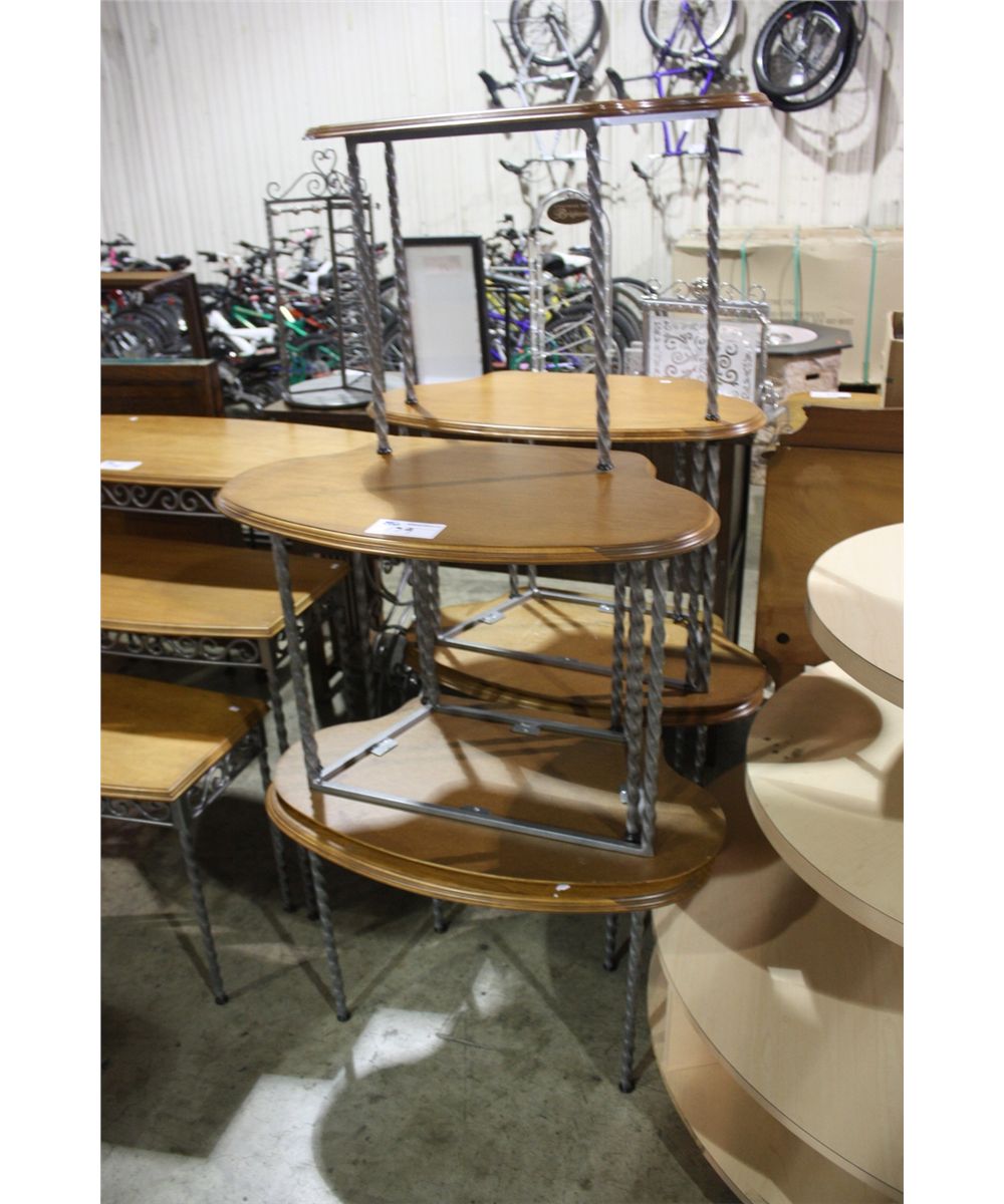 7 WROUGHT IRON & WOOD DISPLAY TABLES