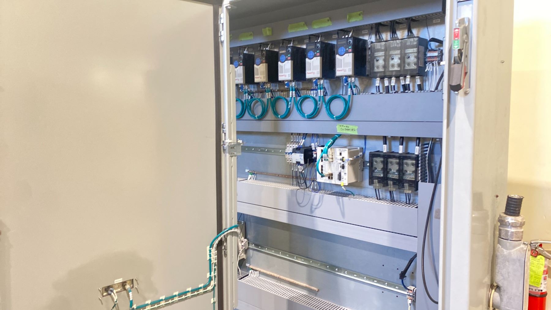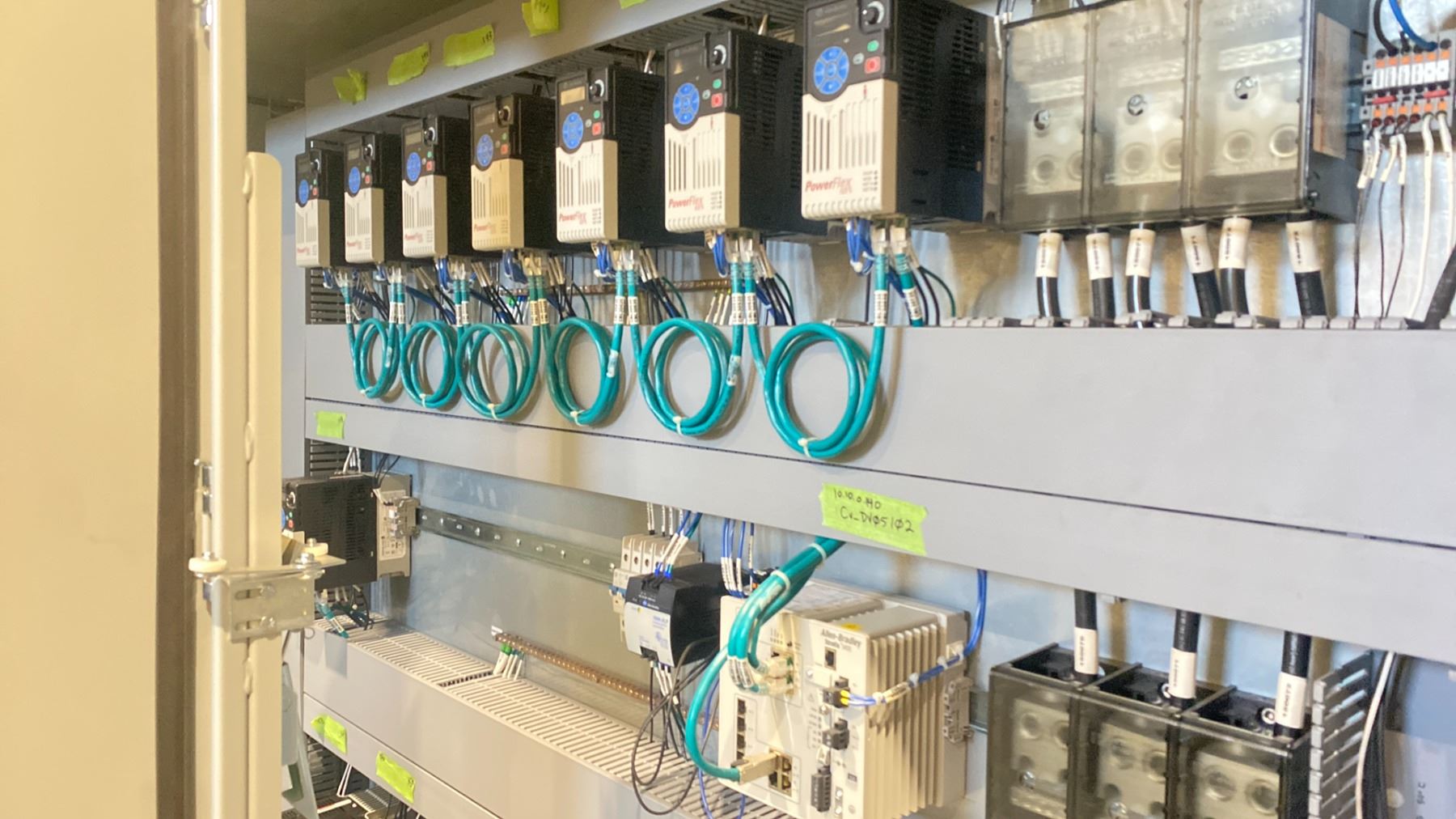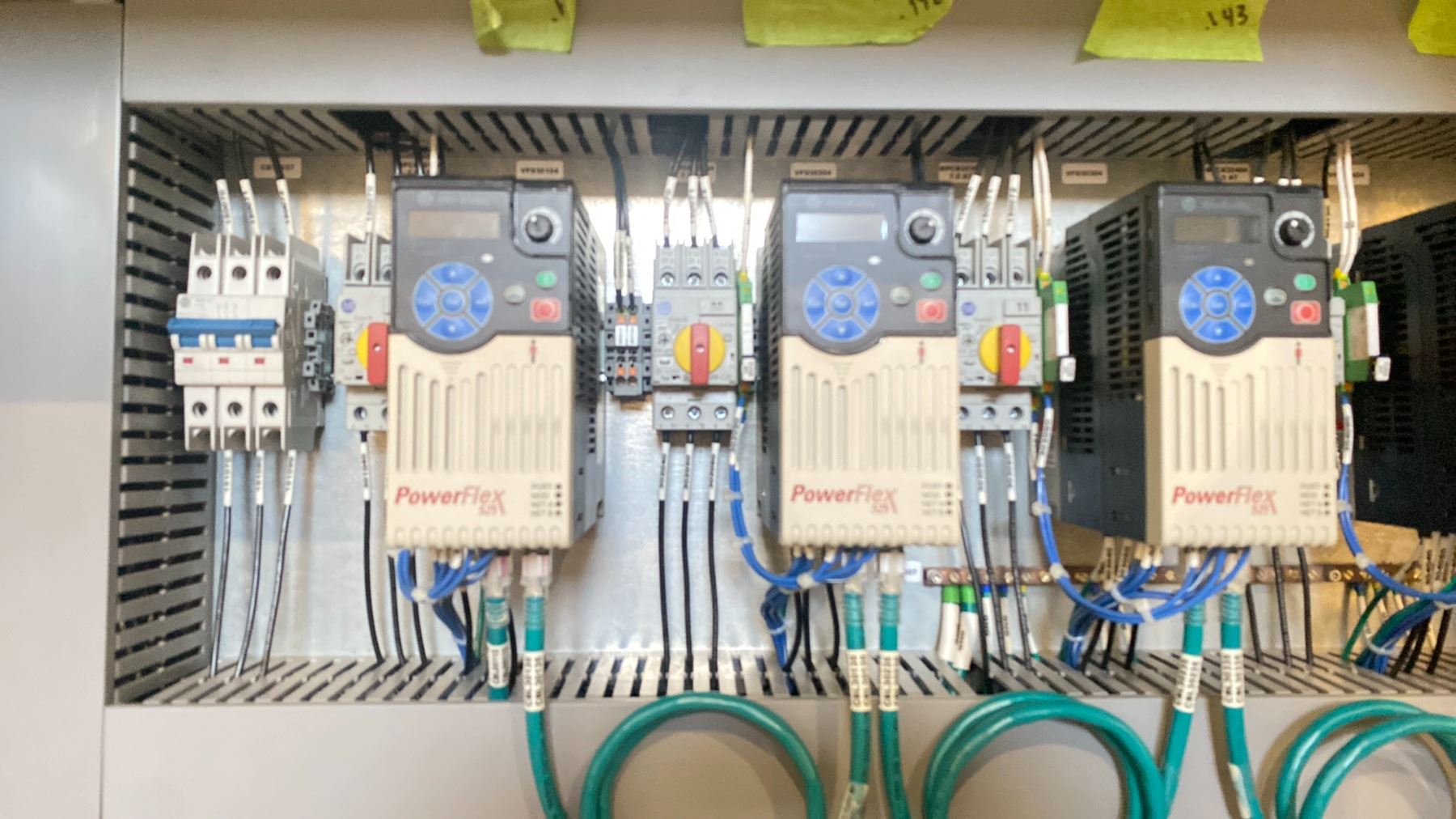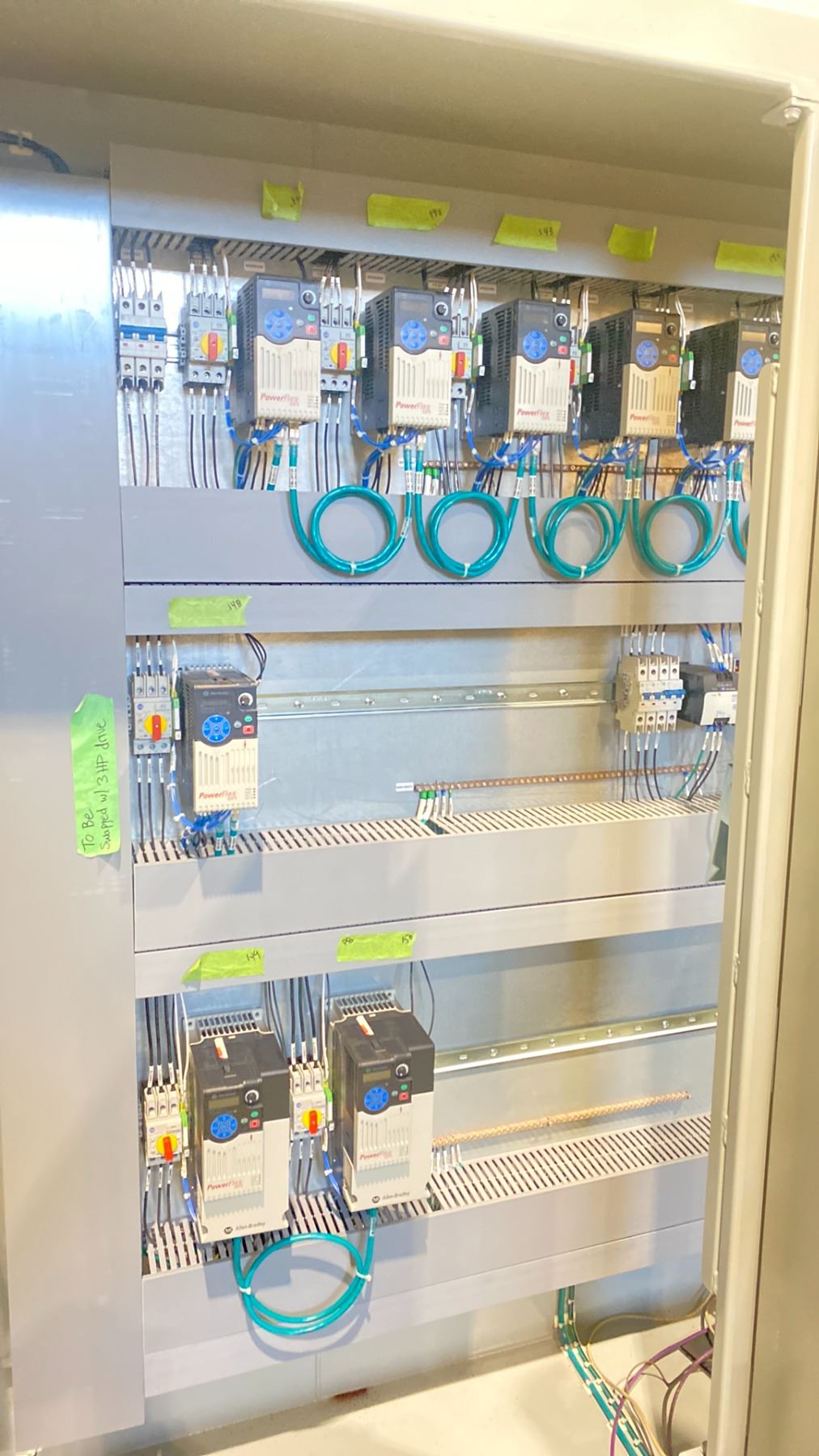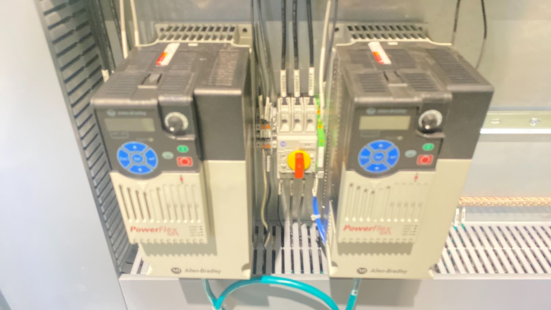 7' X 8' POWER SUPPLY WITH 8 ALAN BRADLEY 3 HP VARIABLE FREQUENCY DRIVES, 2 ALAN BRADLEY 5 HP FREQUENCY DRIVES, ALAN BRADLEY REMOTE, ALAN BRADLEY WIRE CONTROLLER & QUICK DISCONNECT