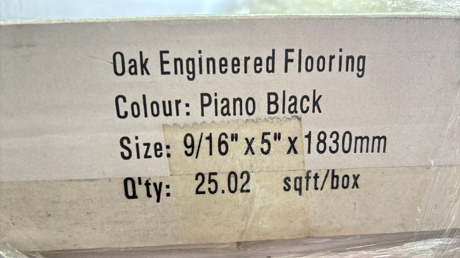 700.56 SQ FT OF PIANO BLACK OAK ENGINEERED 1830MM GLUELESS FLOORING 25.02 SQ FT PER BOX 28 BOXES 700.56 SQ FT TOTAL *MUST TAKE ALL ON PALLET*
