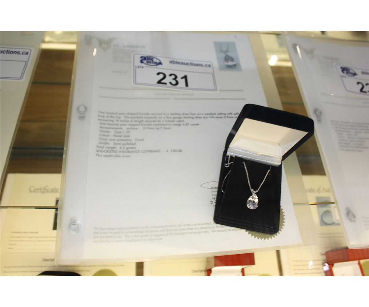 $750 GEMOLOGIST APPRIASED 6.87CT PEAR CUT PINK KUNZITE NECKLACE