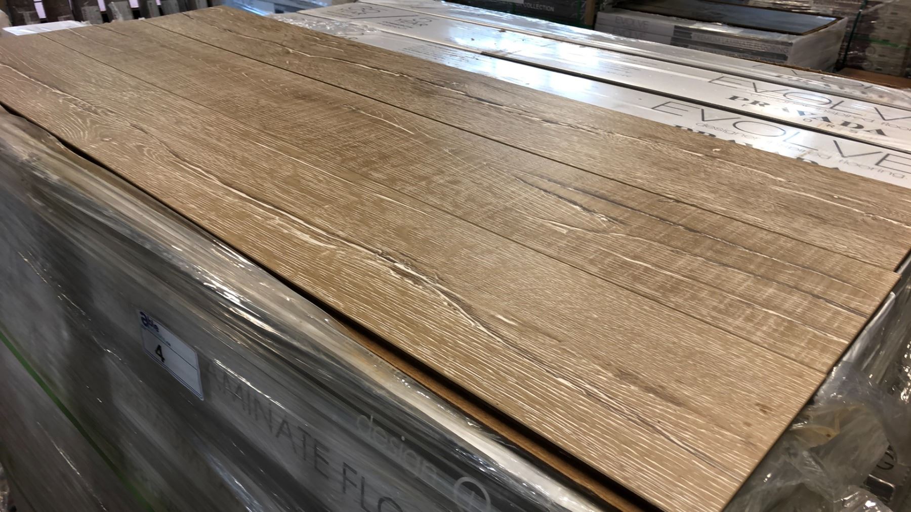 755.30 SQFT OF PRAVADA FLOORS EVOLVE PARCHMENT 35 BOXES ANTIQUE EMBEDDED WIRE BRUSH FINISH PREMIUMS LAMINATE FLOORING 21.58 SQFT PER BOX 12MM X 165MM X 1215MM *MUST TAKE ALL ON PALLET*