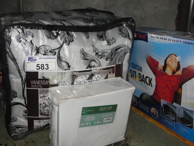 7PC BED IN A BAG, QUEEN SIZE SHEET SET AND OBUS FORM BACK PILLOW