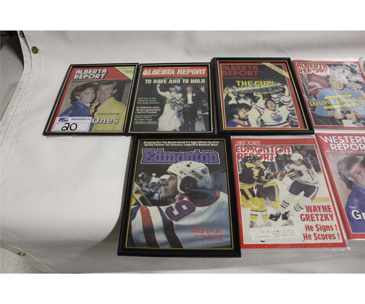 8 ASSORTED GRETZKY COVER PUBLICATIONS FRAMED & BAGED