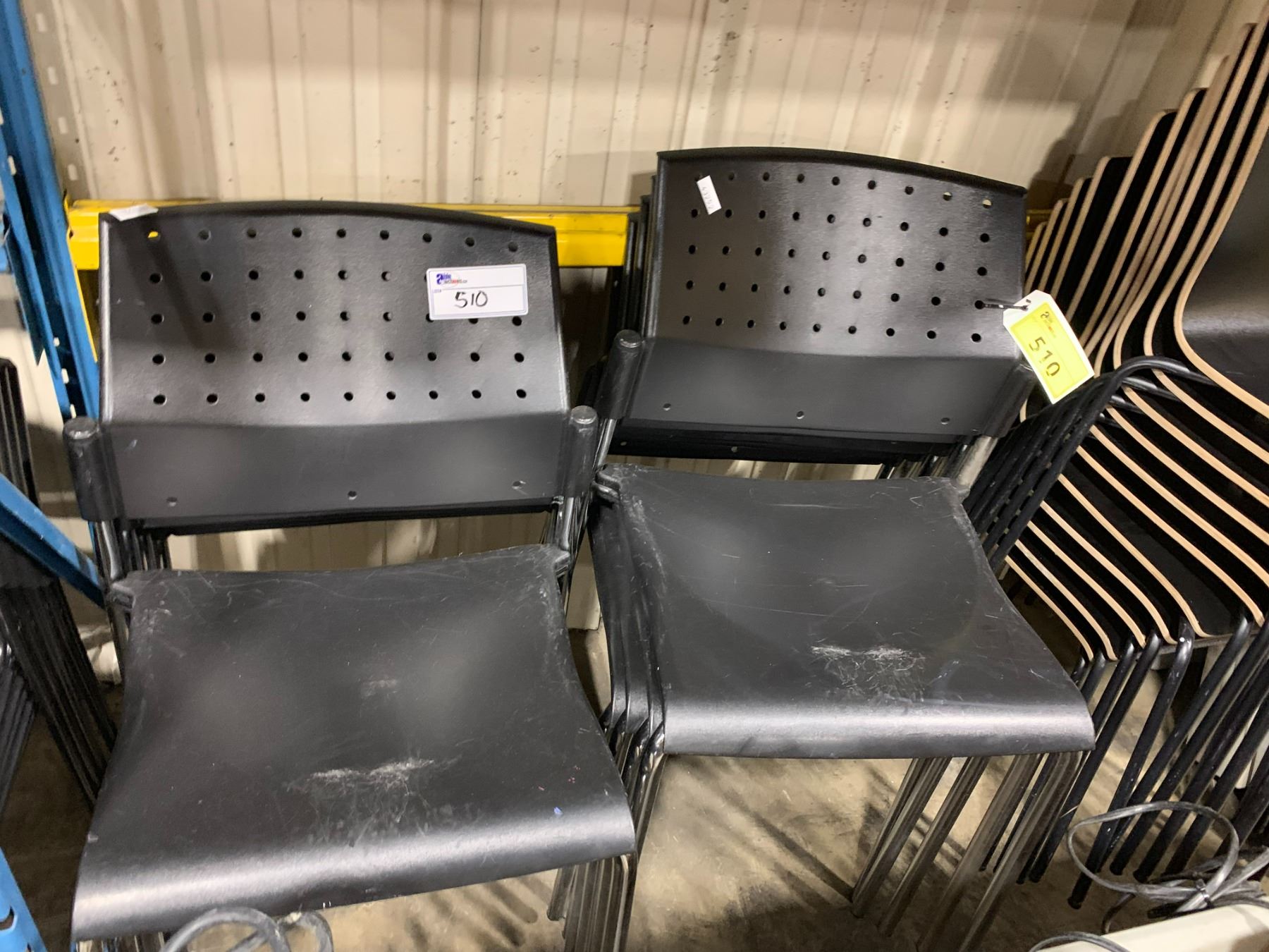 8 BLACK PLASTIC METAL FRAMED COMMERCIAL STACKING CHAIRS ( STYLE 2 )
