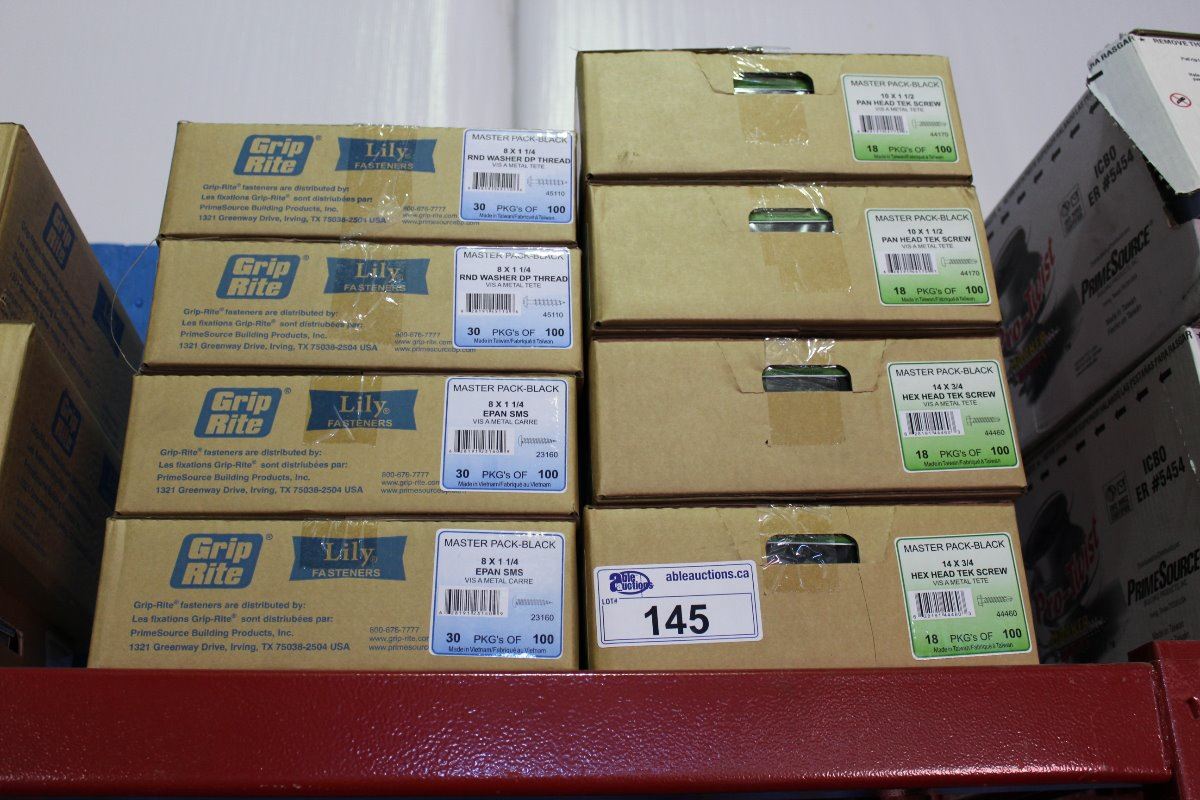 8 BOXES OF ASSORTED NEW FASTENERS- MASTER PACK WASHER DP THREAD SCREWS HEX HEAD TECH SCREWS  ECT