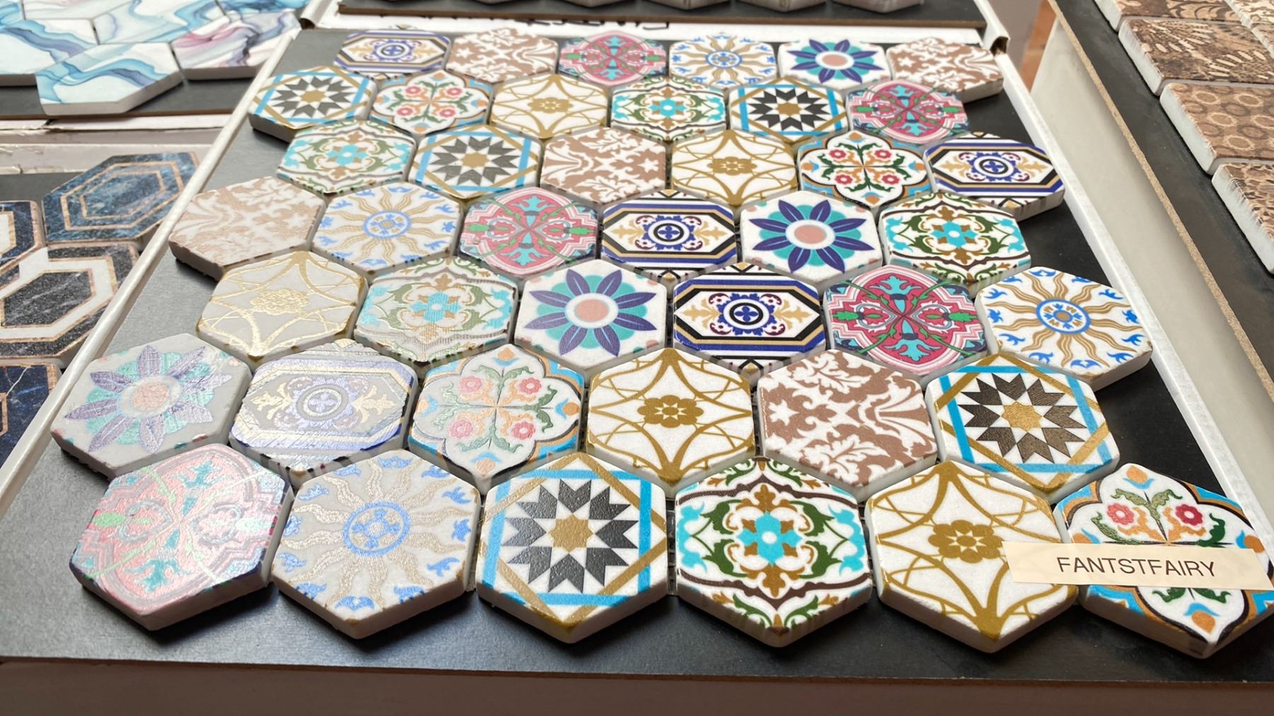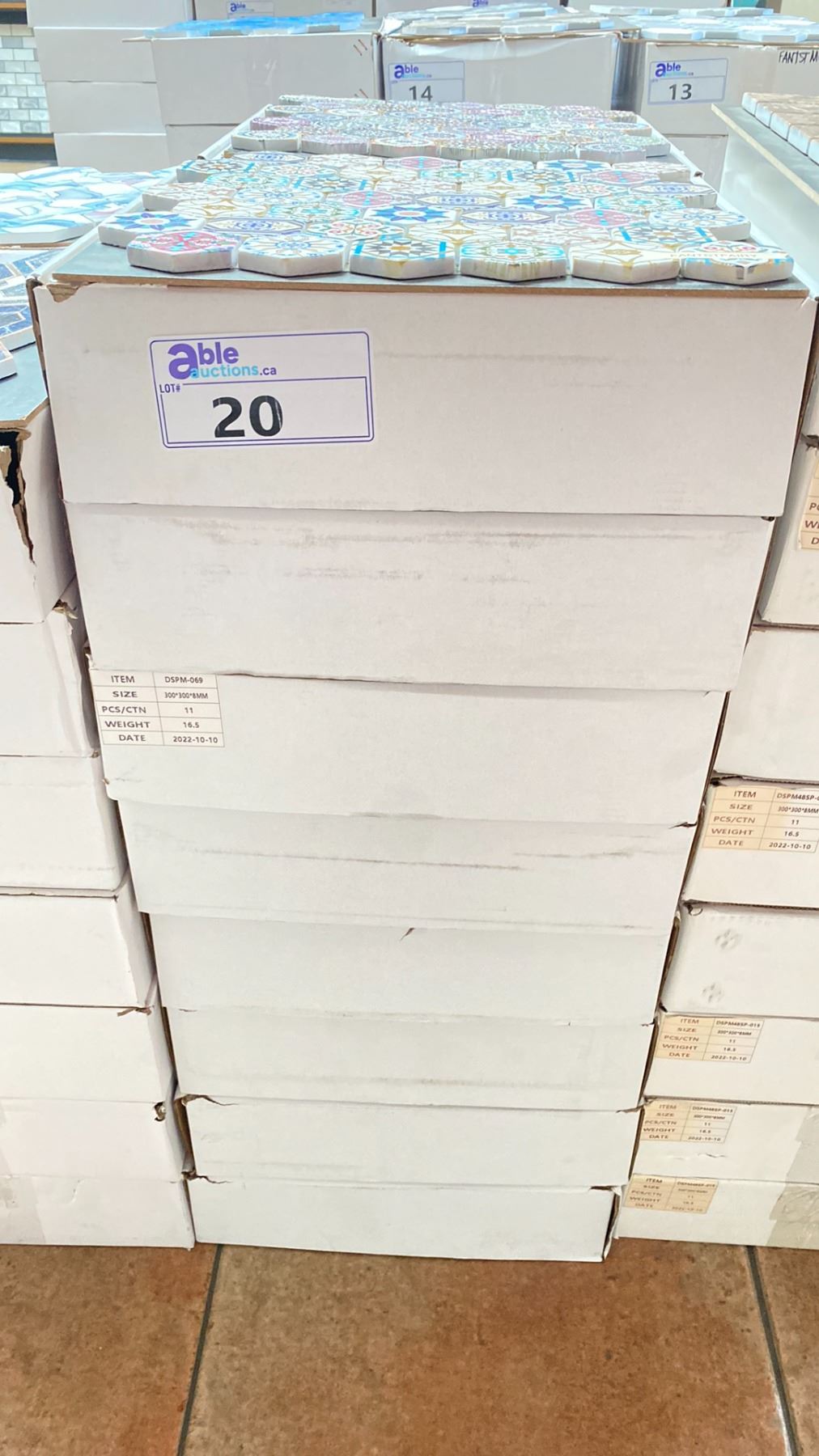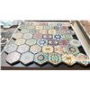 8 BOXES OF MARBLE MOSAIC HEXAGON TILE IN FANTSTAIRY 11 X 1SQ.FT. SHEETS PER BOX APPROX 88SQ.FT. TOTAL