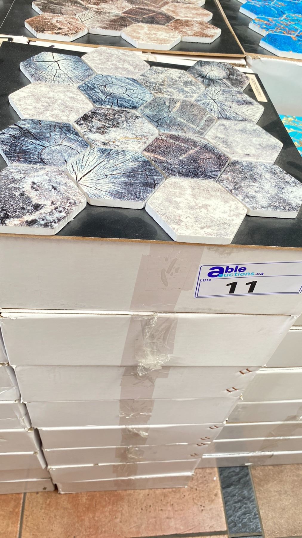8 BOXES OF MARBLE MOSAIC HEXAGON TILE IN FANTSTGONDOR 11 X 1SQ.FT. SHEETS PER BOX APPROX 88SQ.FT. TOTAL