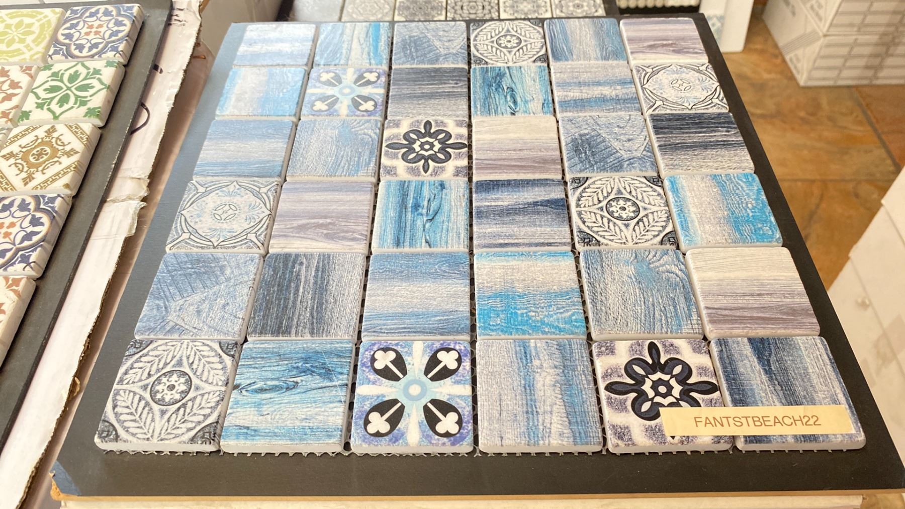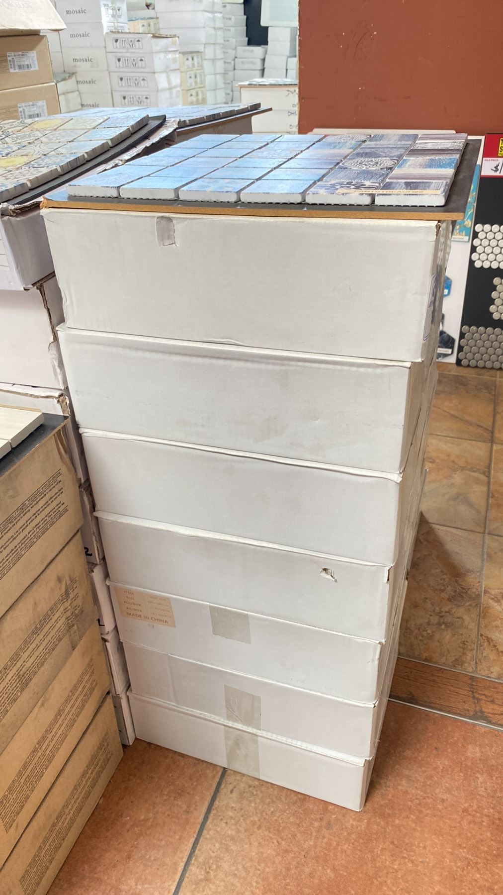 8 BOXES OF MARBLE MOSAIC TILE IN FANTSTBEACH22 11 X 1SQ.FT. SHEETS PER BOX APPROX 88SQ.FT. TOTAL