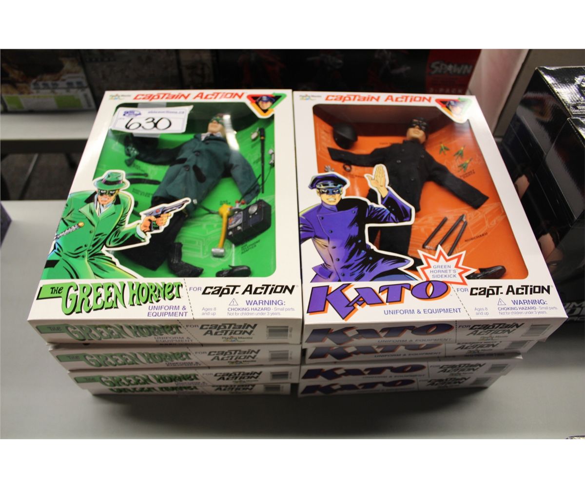 8 CAPTAIN ACTION ACTION FIGURES- 4 GREEN HORNET AND 4 KATO UNIFORM AND EQUIPMENT, NEW IN BOX