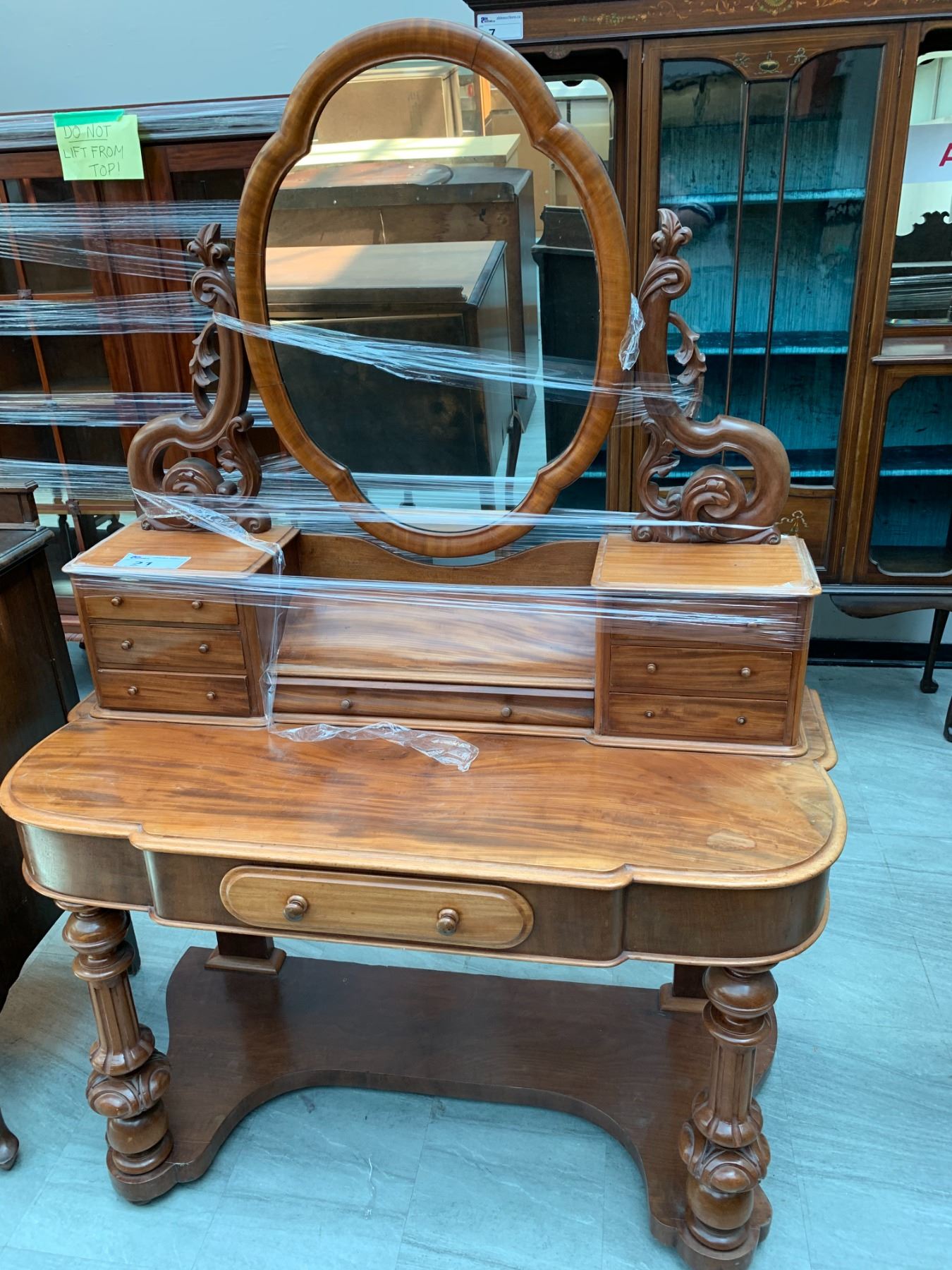 8 DRAWER WOOD VANITY WITH MIRROR APPROX 64"X46"X21"