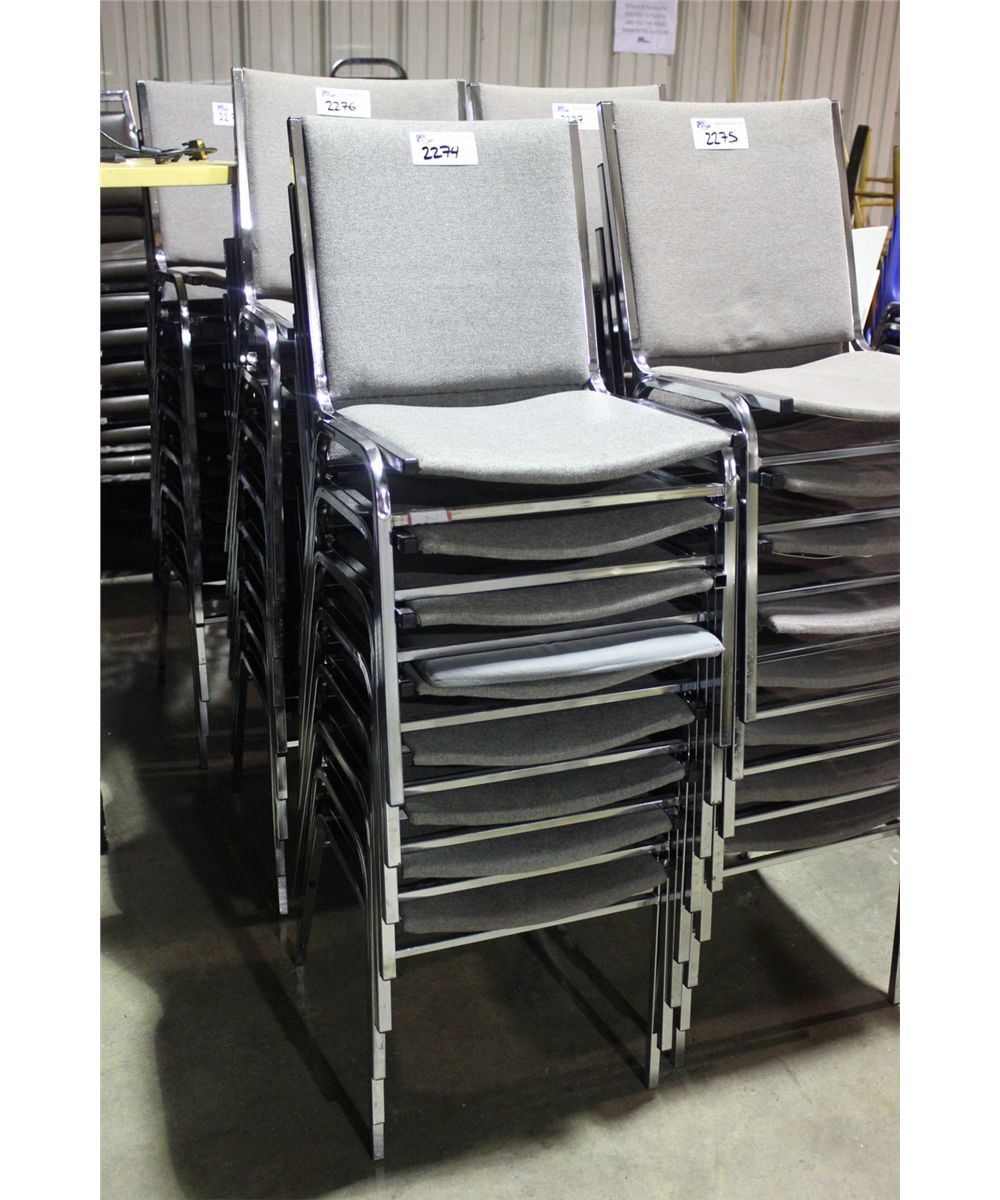 8 - GREY PADDED METAL FRAMED STACKING CHAIRS
