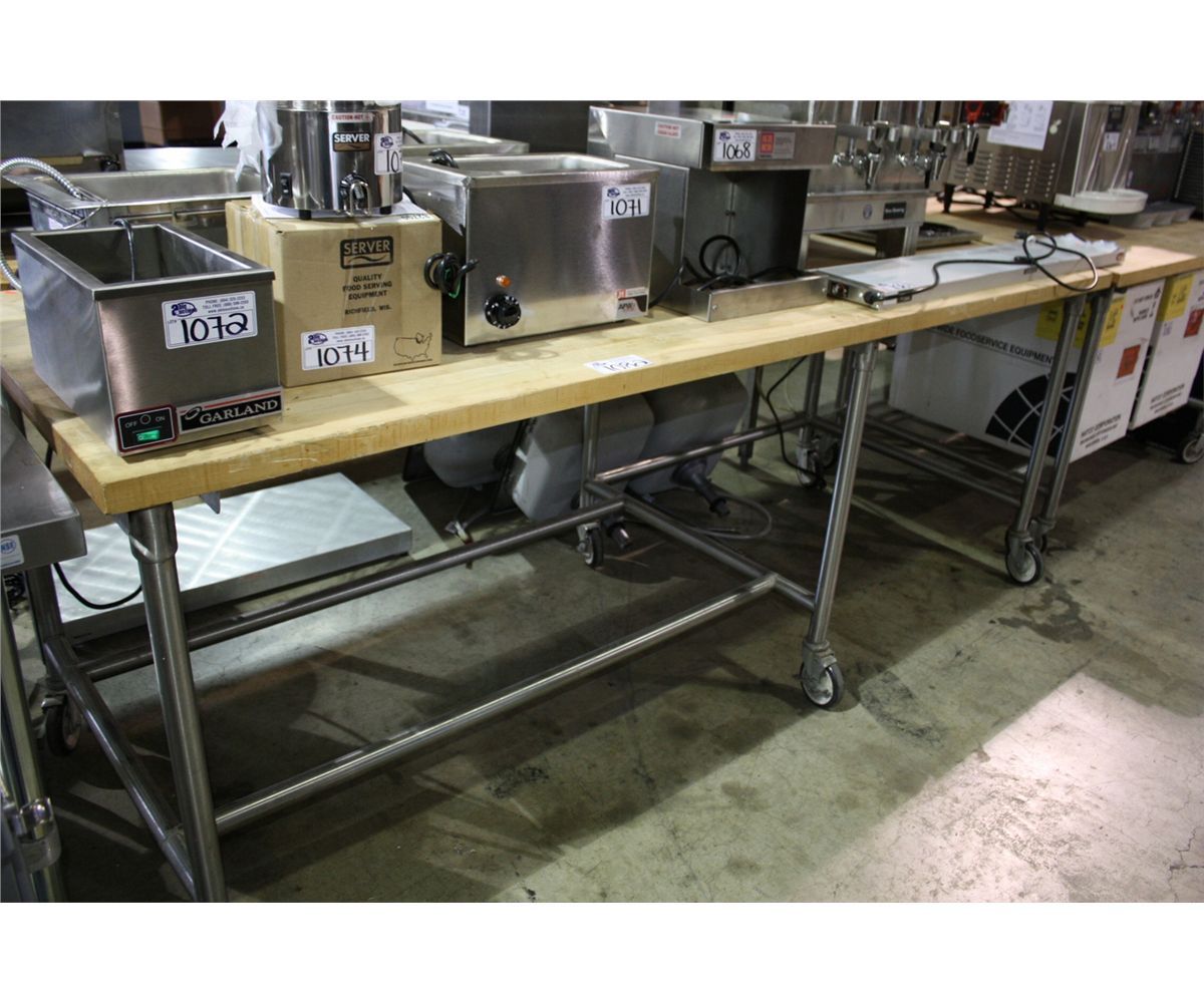8' MOBILE BUTCHER BLOCK TOP TABLE