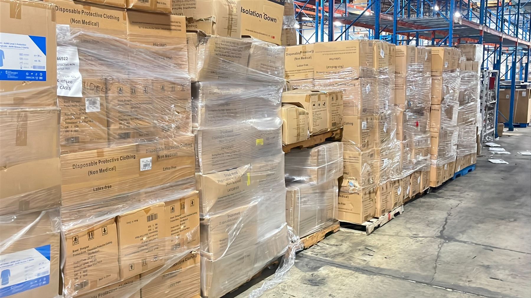 8 PALLET OF DISPOSABLE PROTECTIVE GOWNS (NON MEDICAL) - APPROX. 30 BOXES PER PALLET/120 PCS. PER BOX